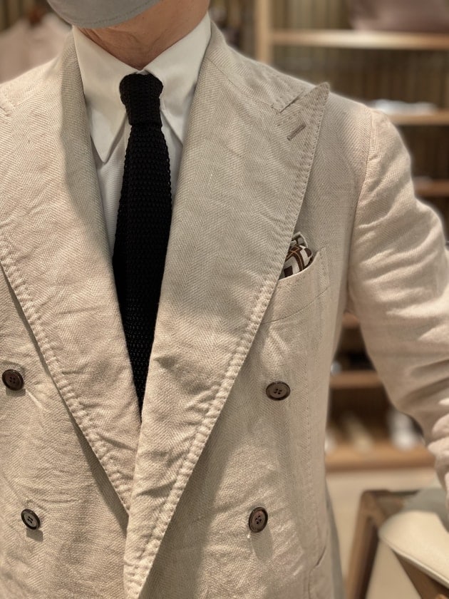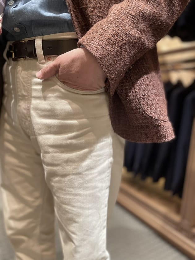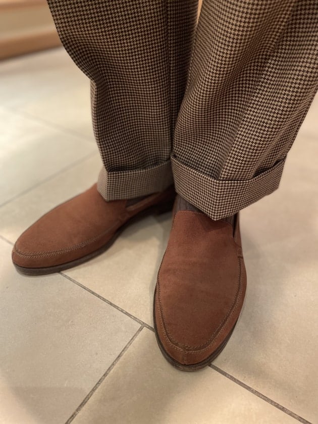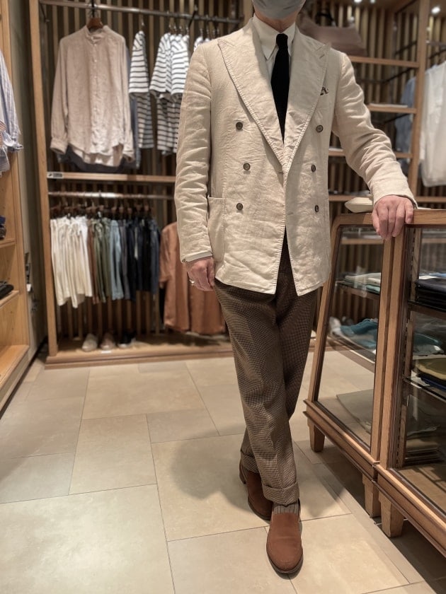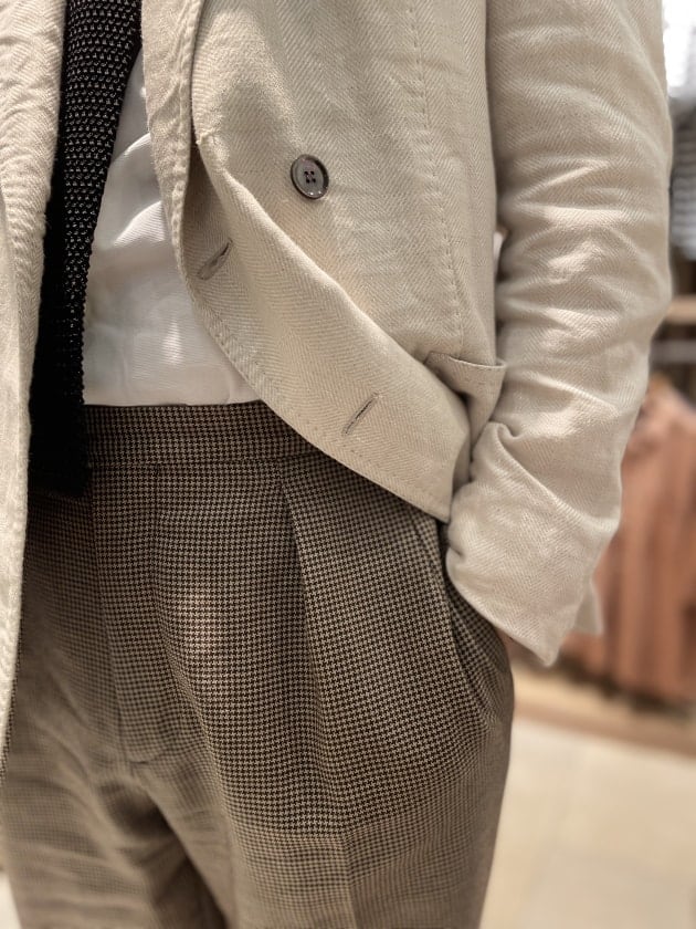 画像では写っていませんが、2プリーツのトラウザーズだったと思います。