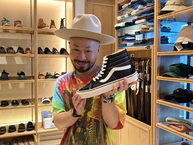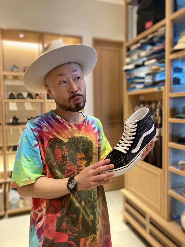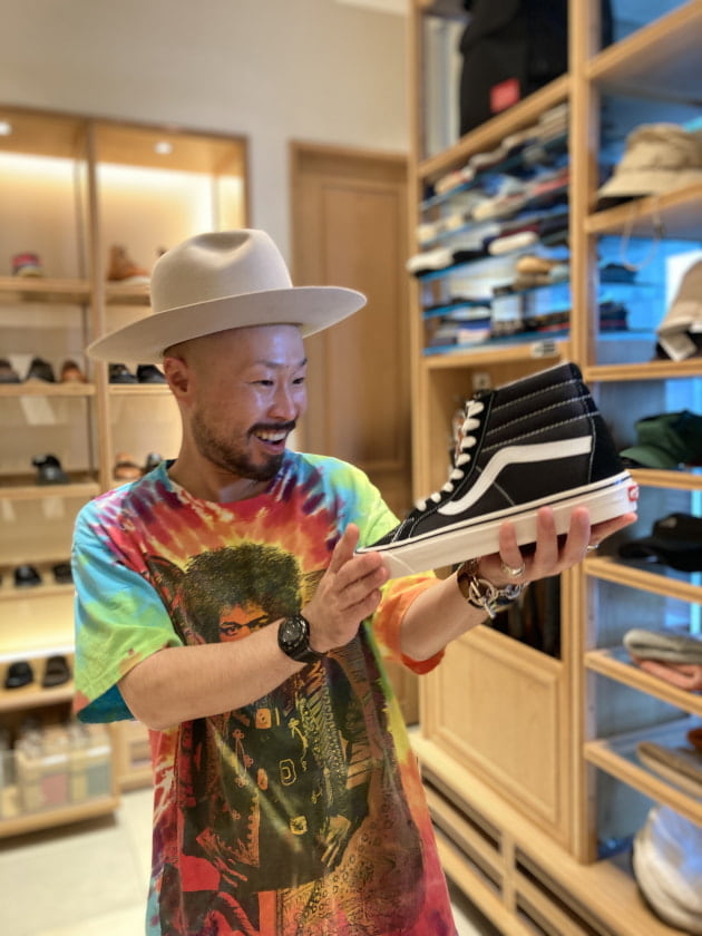 (Tシャツに時代を合わせてアナハイムでも良いですが、スニーカーのクタリ具合もあってクラシックスリッポンにしました♪)