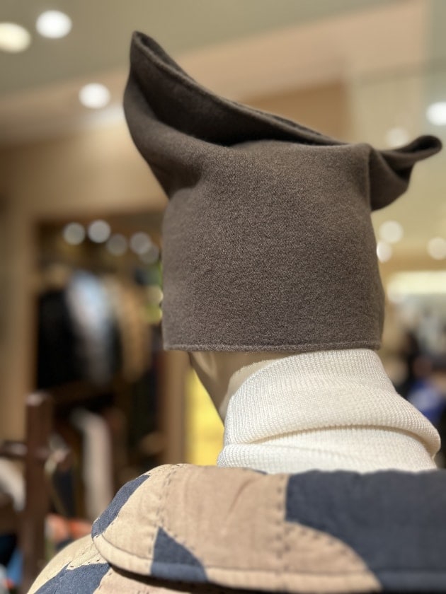 いえいえ、こちら商品としてはシンプルなヘアバンド。それを巷で流行りの猫耳ビーニーに仕上げる大前のスタイリング力に驚嘆です。
