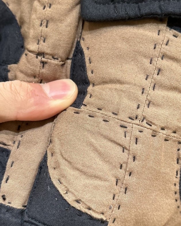 更にパッチワーク周りのステッチはハンド。堪りませんよね。手の温もりを感じさせる一着。