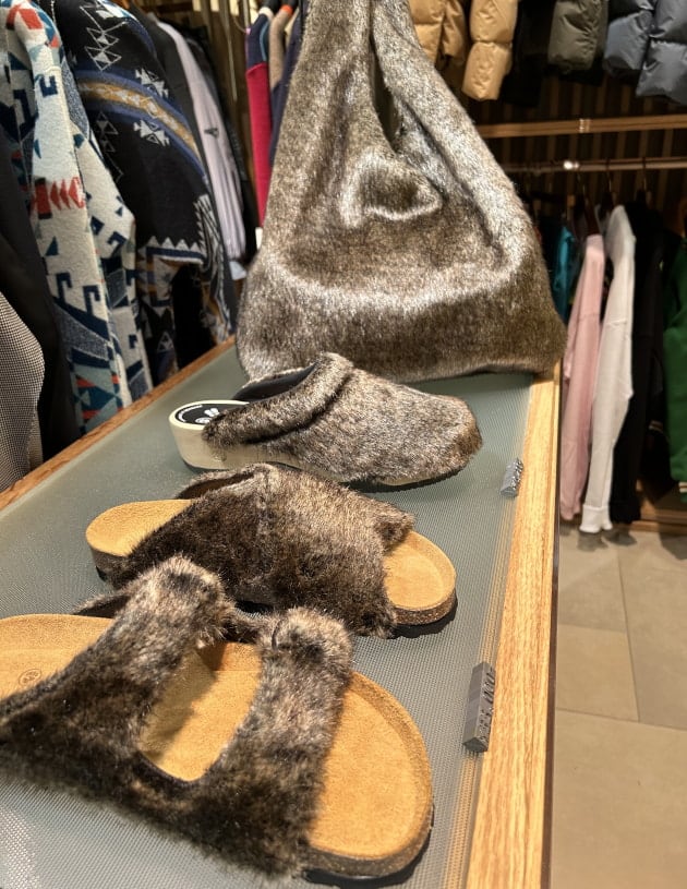 奥にある《International Gallery BEAMS》のバッグで使っているファーと同じモノ。
