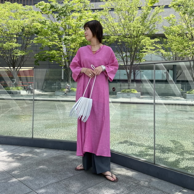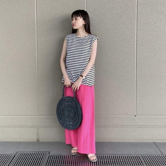 ぺたんこのサンダル、グンっと夏感がでますね!程よくカジュアルさをプラスできるのでコーディネートの幅も広がります.