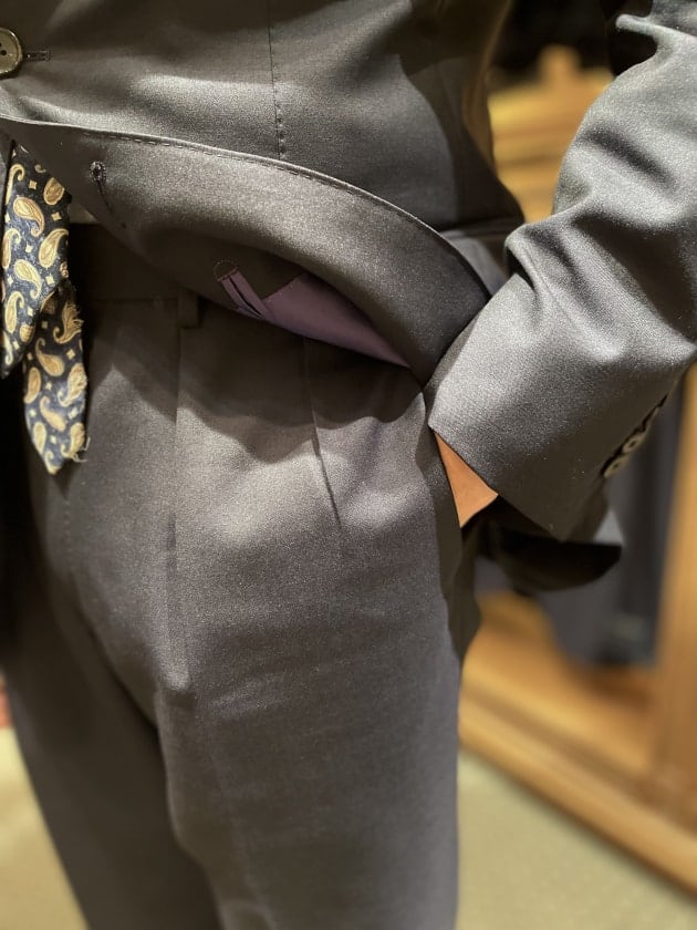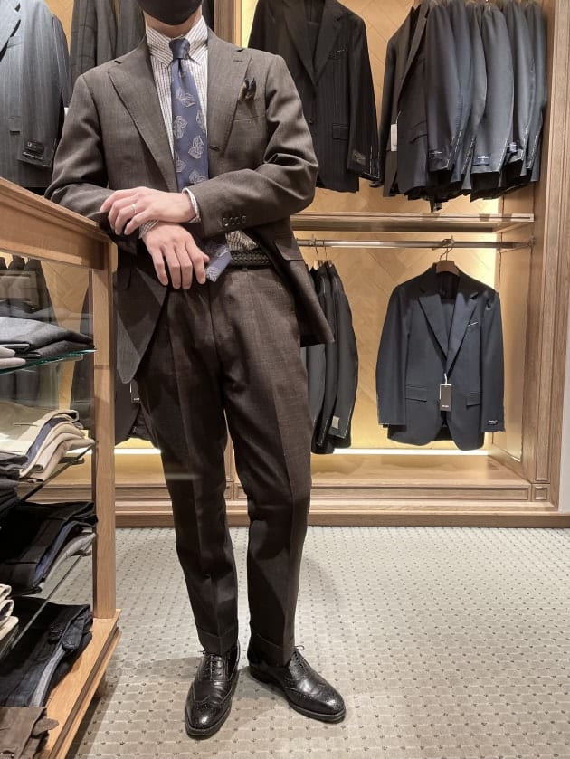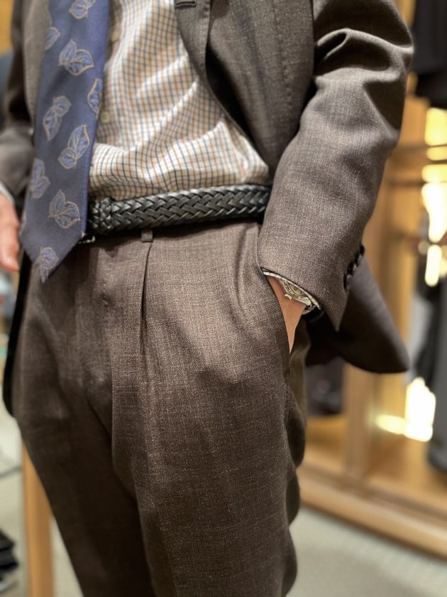 後ろ姿もこのトラウザーズのシルエットの良さを引き出しているのではないでしょうか。わたしもI様にご満足いただき嬉しい限りです。
