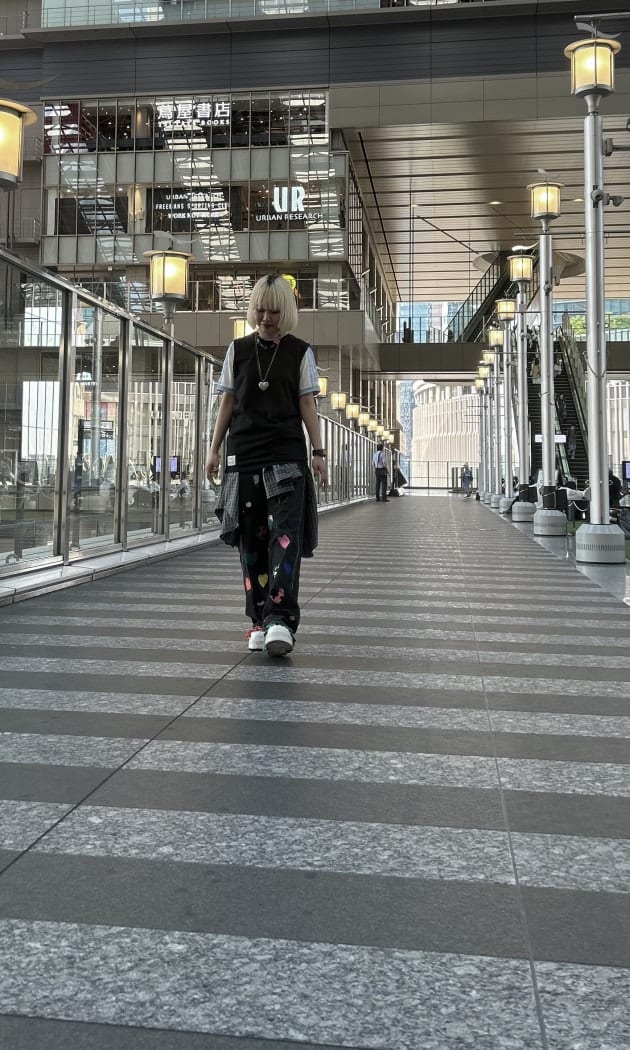 彼女の最近の気分はノースリーブにシャツの腰巻き。6月はまだ夜少し冷えたりするから帰り道にはシャツを羽織れば良いよねっ、て。