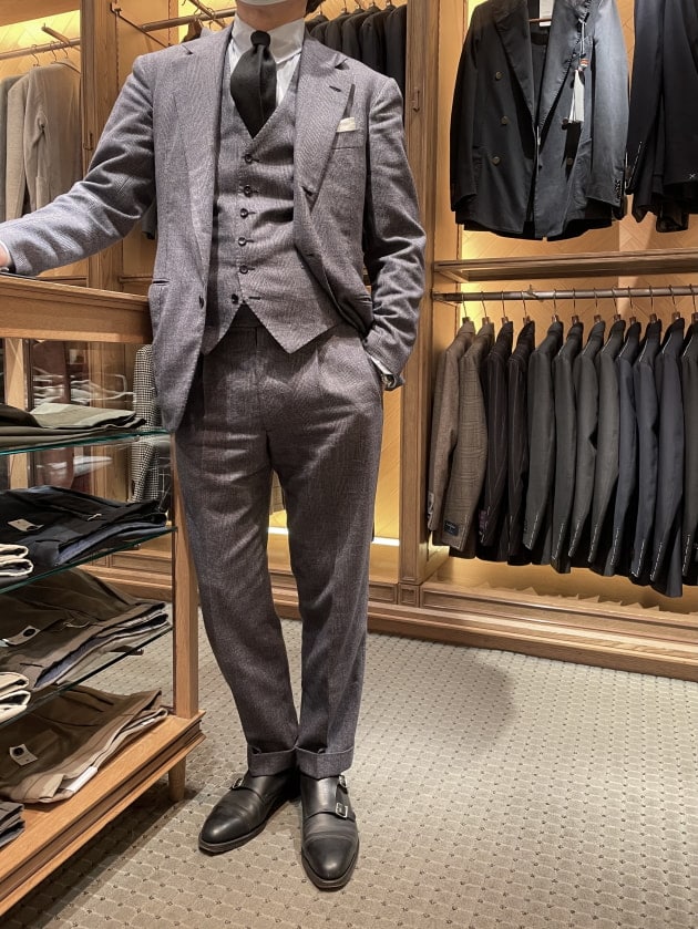 M様のスーツスタイリングはいつもシンプルですが、いつも考えられていると感じさせるコーディネート。