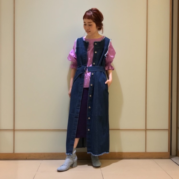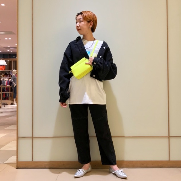 と思いきや、プラスワンアイテムを重ねてスタイリングしていました。