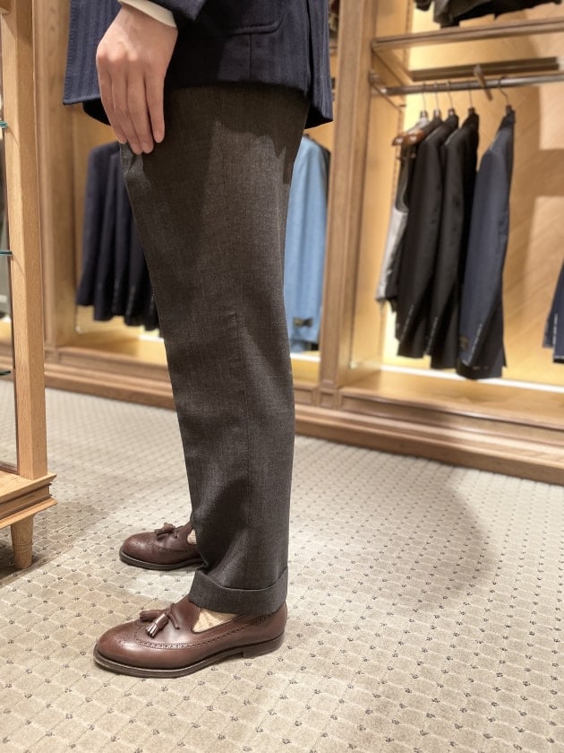 ジャケットなしのクールビズスタイルでご来店されたO様はジャケットのお直しの引き取りに。