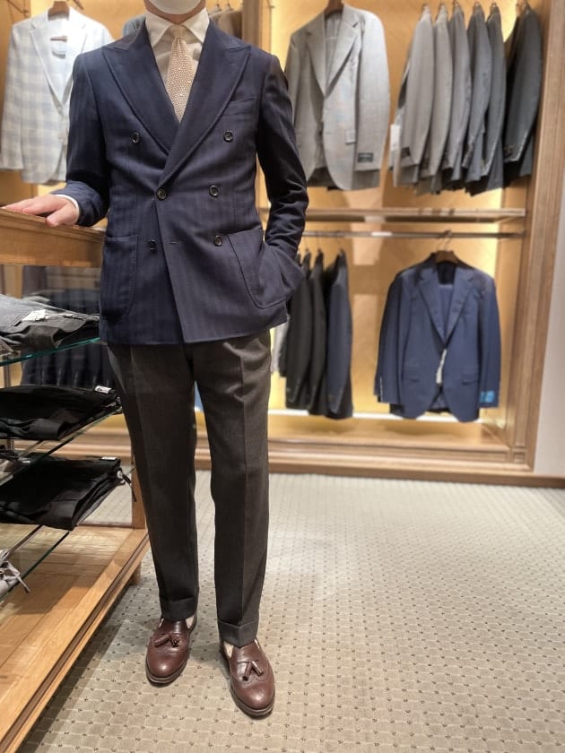 それにしてもO様の〈(ALFONSO SIRICAアルフォンソ・シリカ)〉に袖を通された時の「ふぉお」って一言と笑顔は先シーズンの春夏もですが嬉しく思います。かなり着心地が良いようで、人をダメにするジャケット(やみつきになる)らしいです。