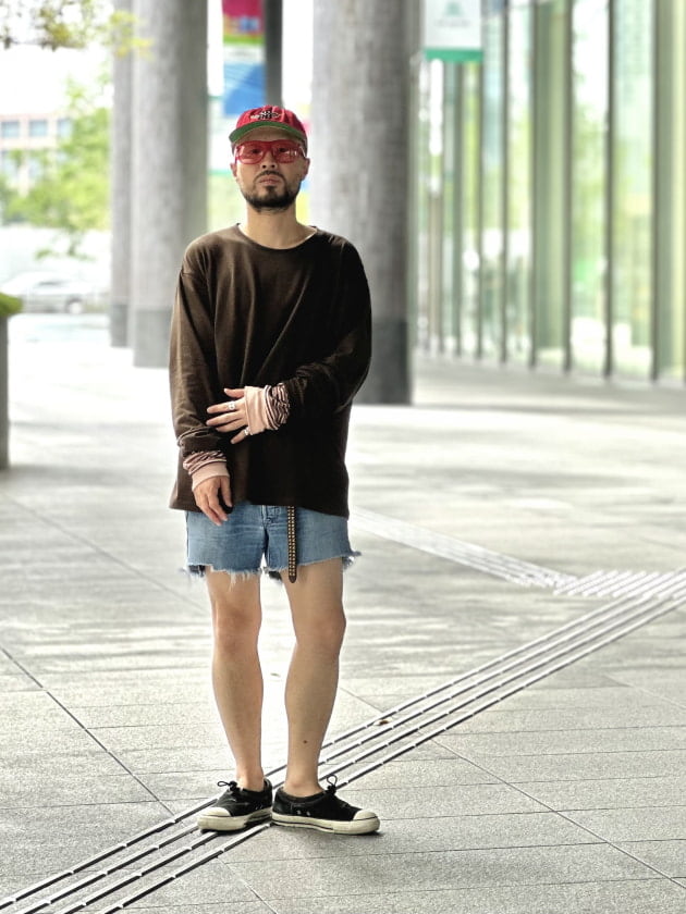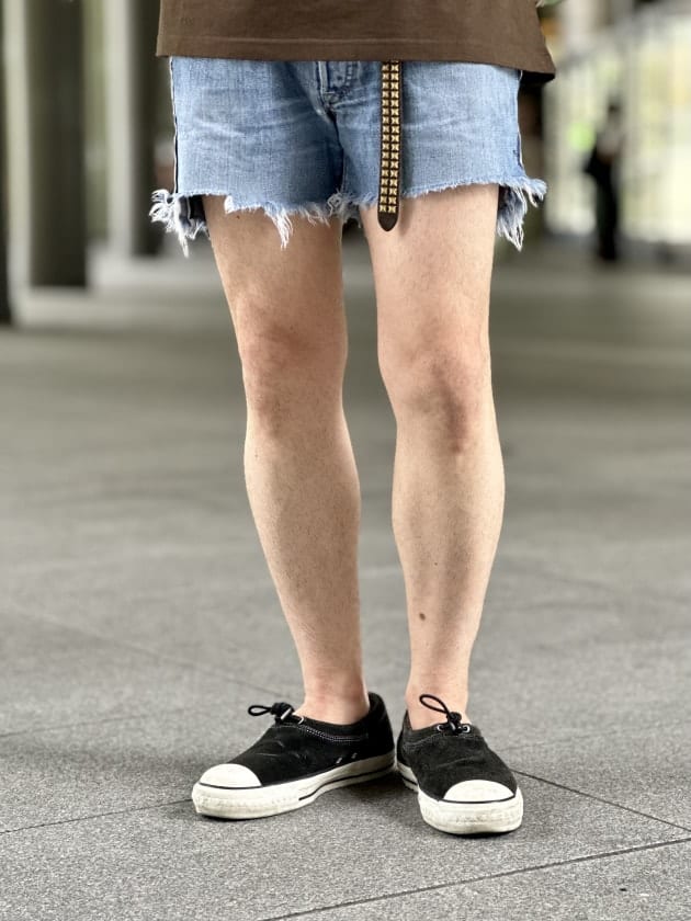 そうなると古着のカットオフされたショーツを合わせたくなり