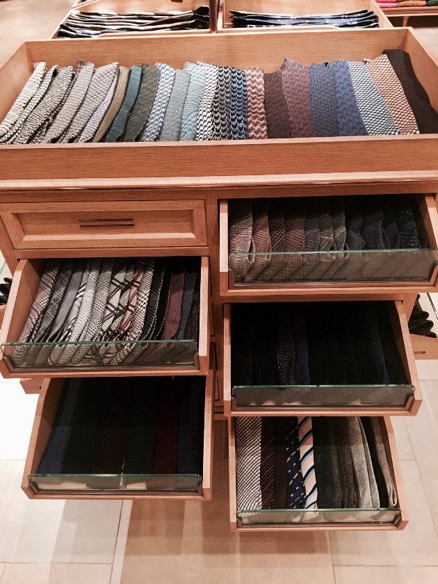 ネック位置が高いため開けた時にブイゾーン周りに立体感が生まれドレス的な見え方になるのでスーツのアウターには抜群だと思います。