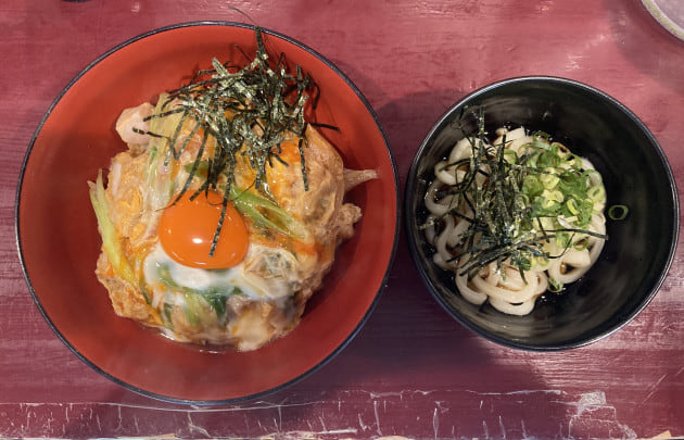 極上親子丼(大盛り)とうどん(冷たいの)セット。