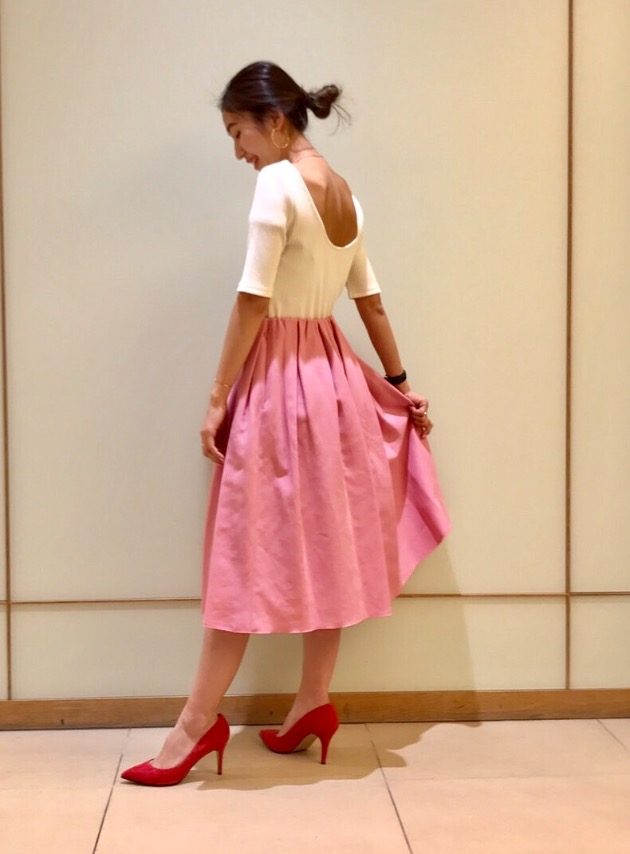 後ろが大きく開き、リボンがアクセントになっています!