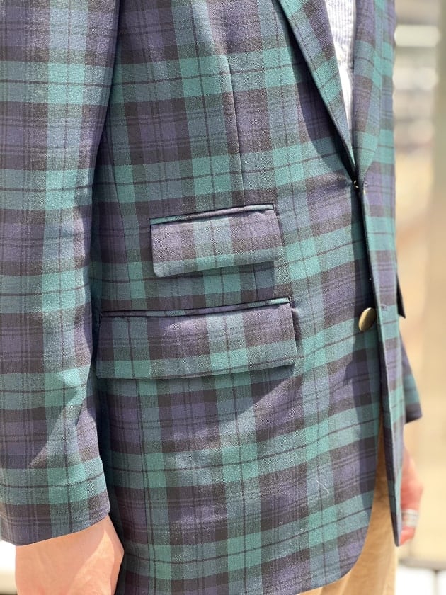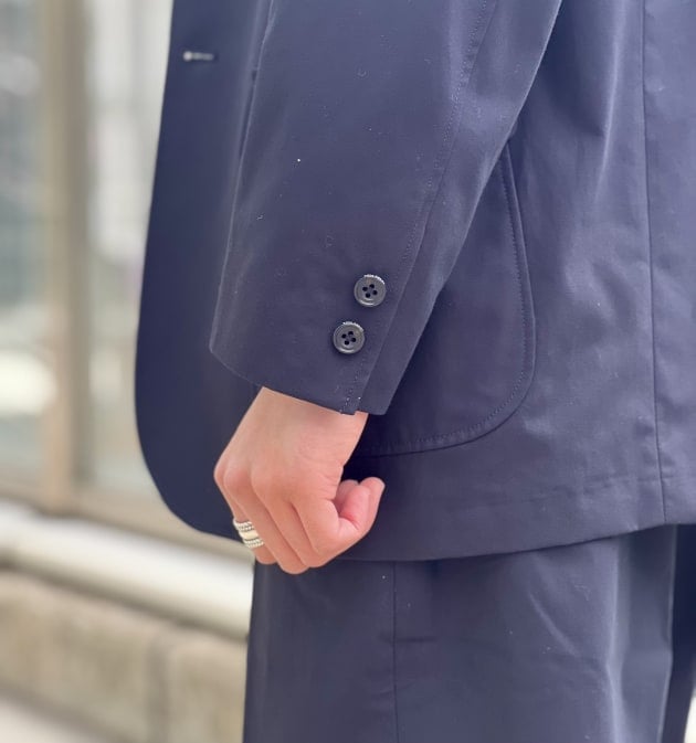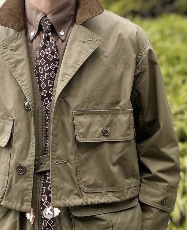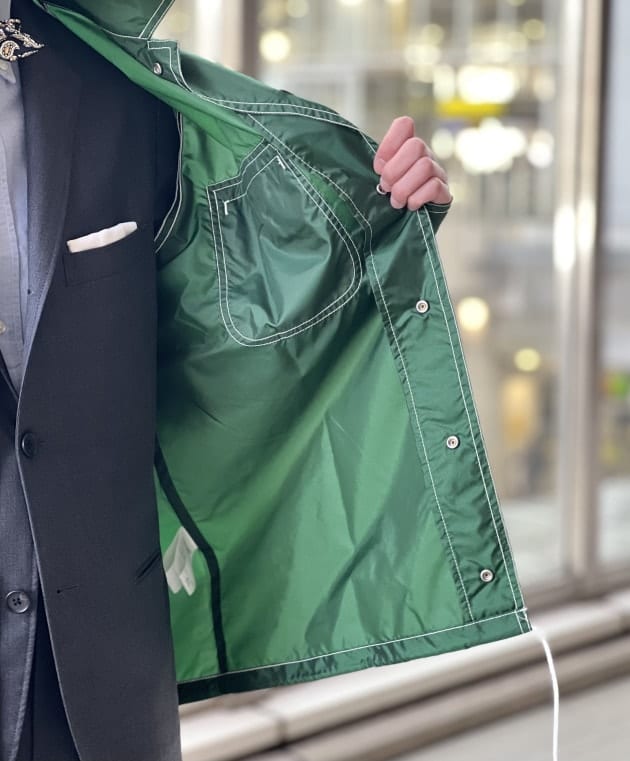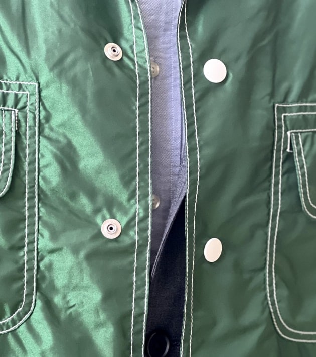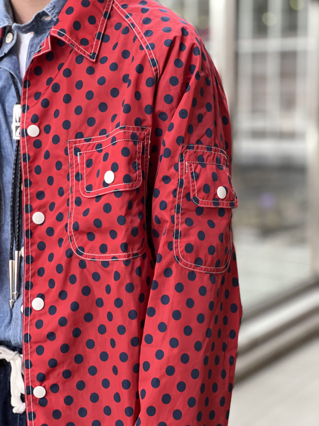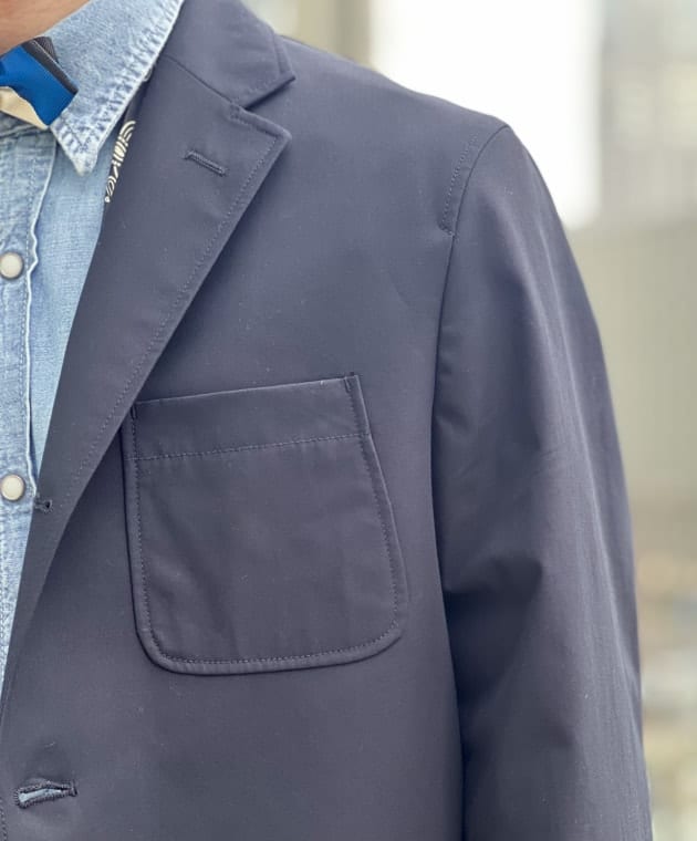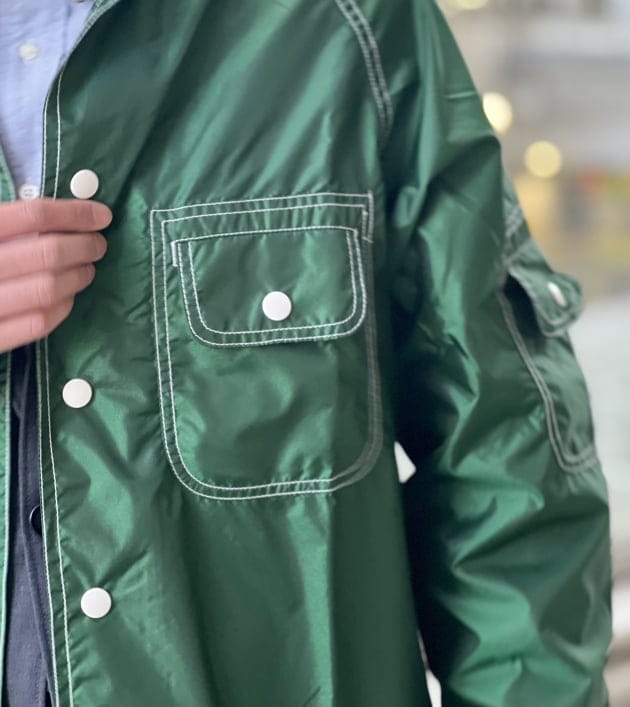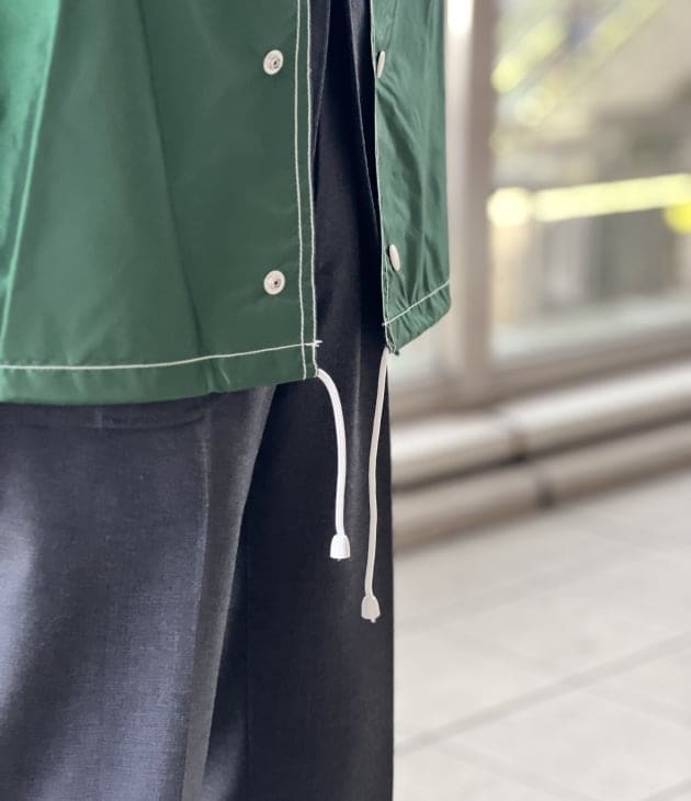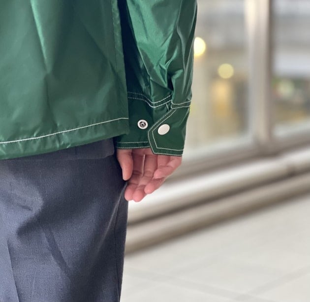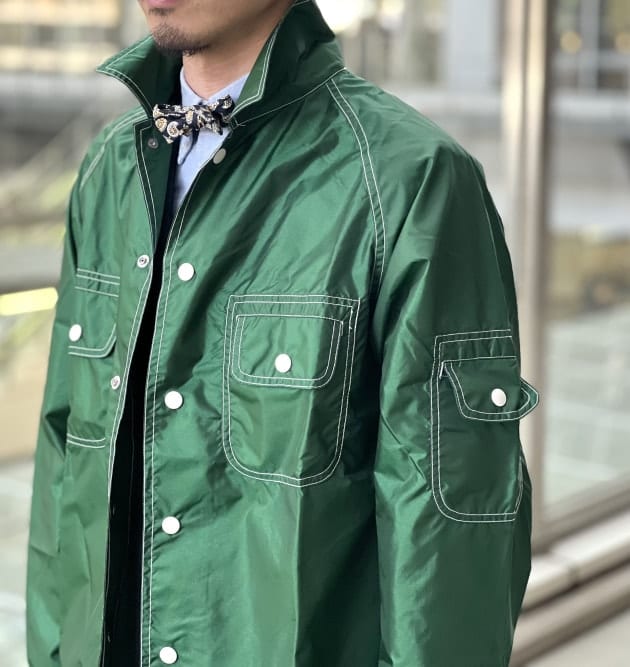 一見するとコーチジャケットの様なディテールですが、フロントや袖にはフラップ付きのポケットに白のステッチが印象的。