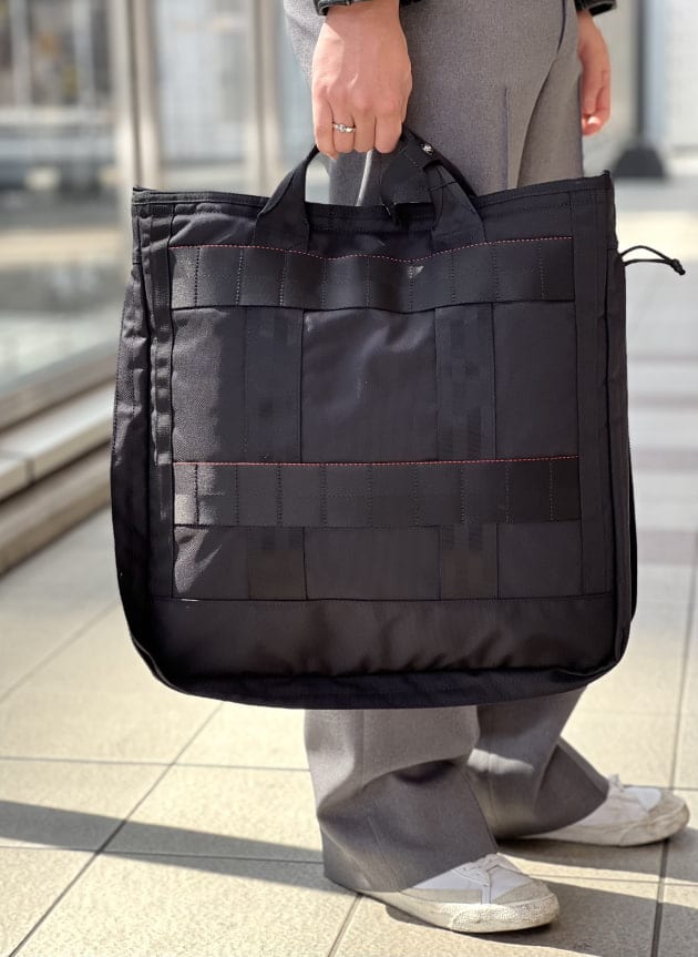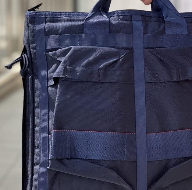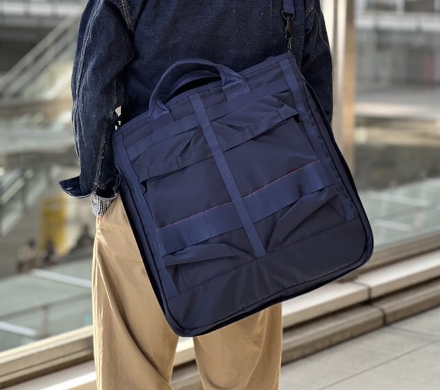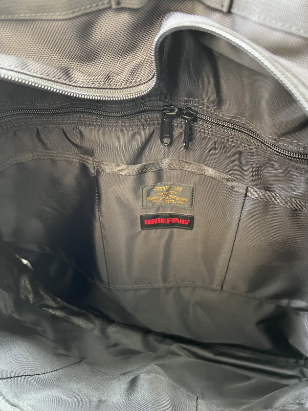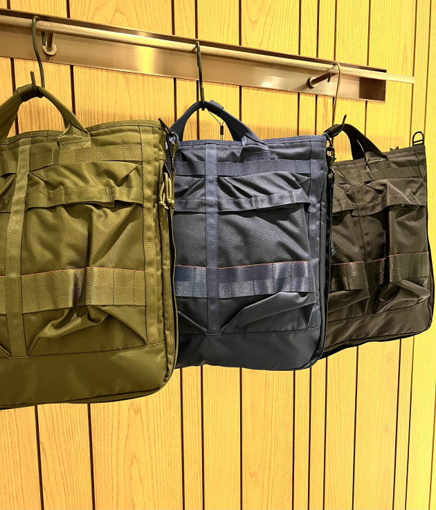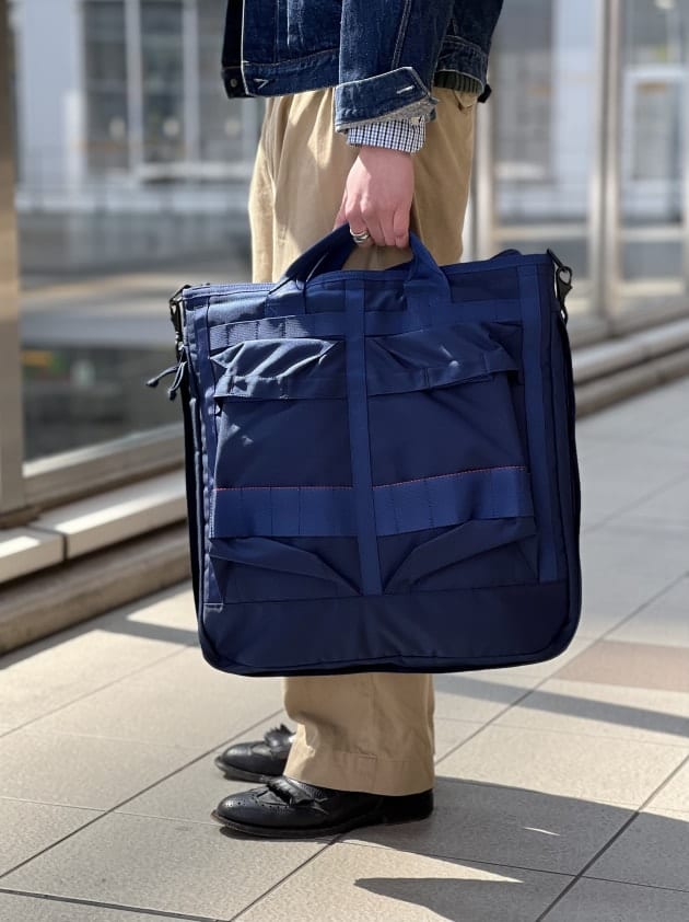 BRIEFINGらしいグログランテープに、中が空洞になっている中空糸を使用した、コーデュラエアバリスティックナイロン素材は質実剛健な雰囲気に。