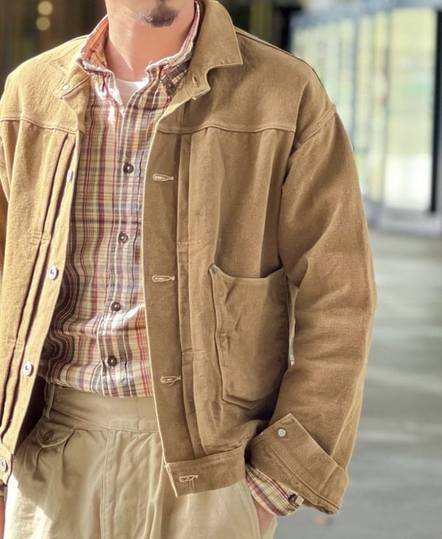 ディテールに関してはヴィンテージウェアに見られるスポーツシャツジャケットをベースに作成しております。