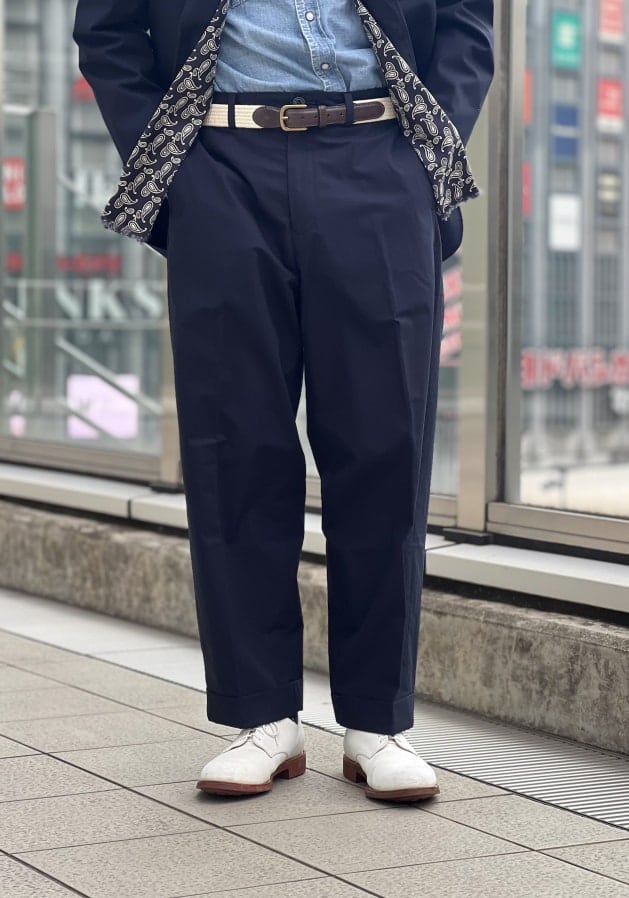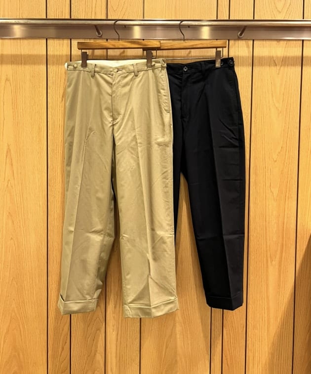 やや深めの股上にゆったりとした身幅が特徴的で、50年代から60年代のストアブランドのワークパンツをベースに作成しております。
