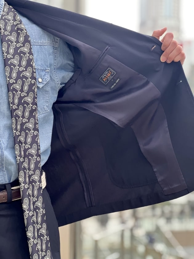 新たに採用された身幅の広いクラシックフィットでのオーダーです。