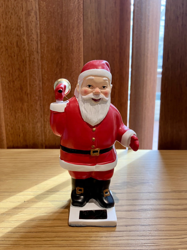 太陽や室内の光が当たると、サンタが手をふるように動くんです。
