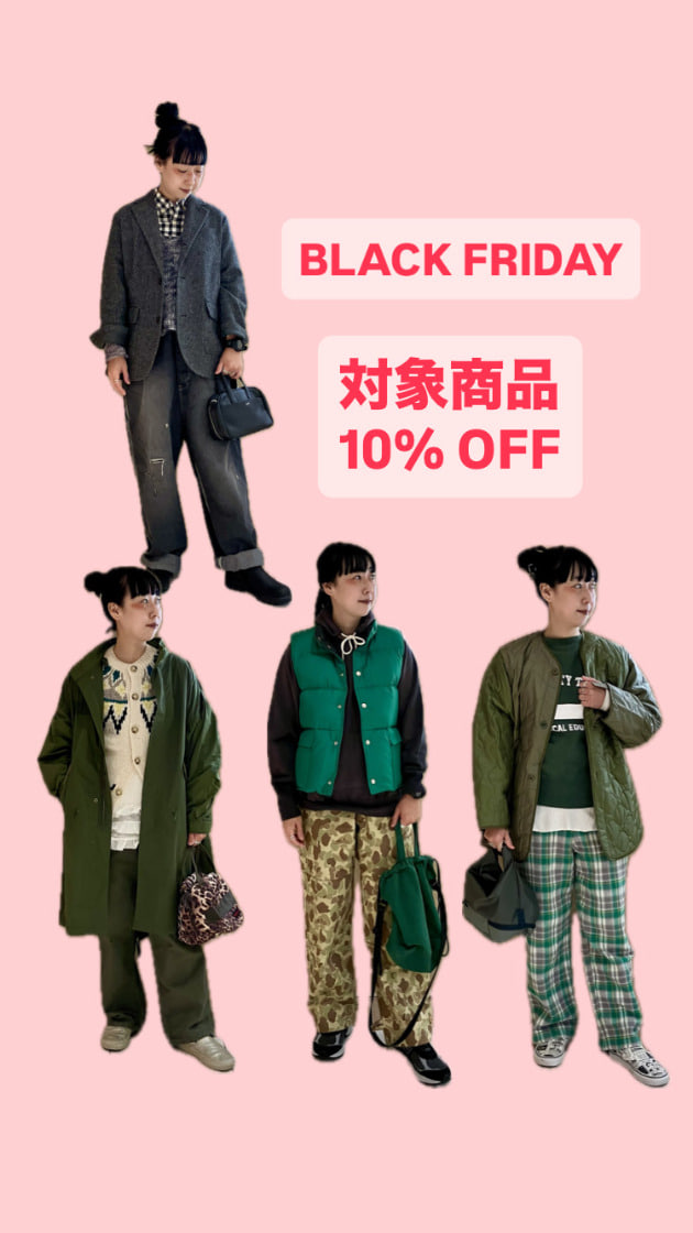 BLACK FRIDAYでは対象のアウターが10%OFF!!