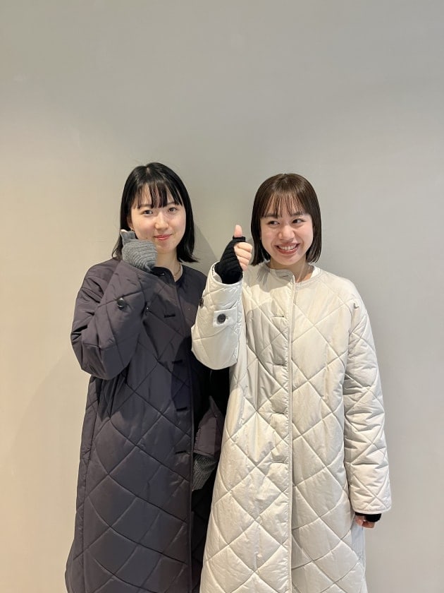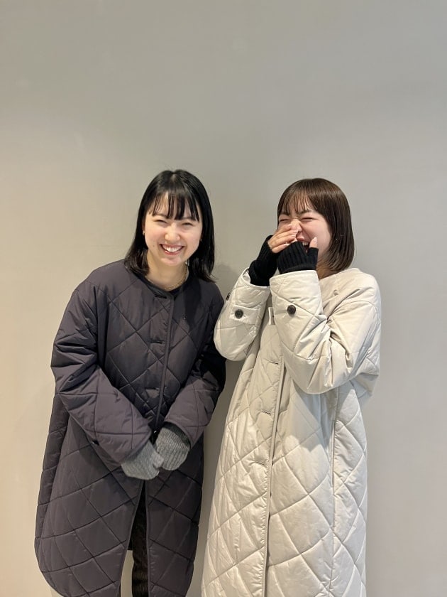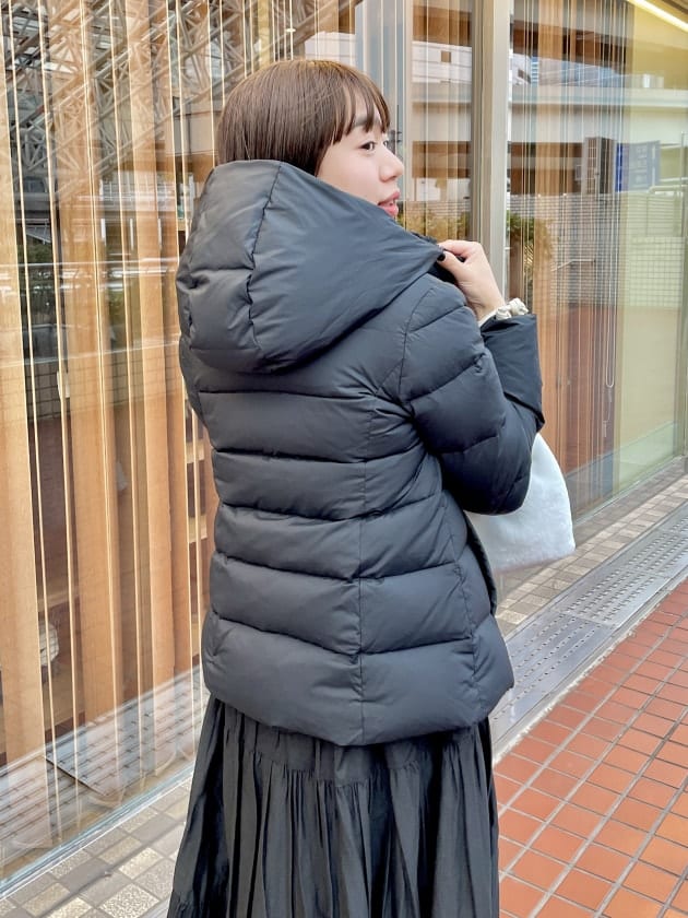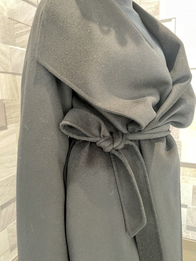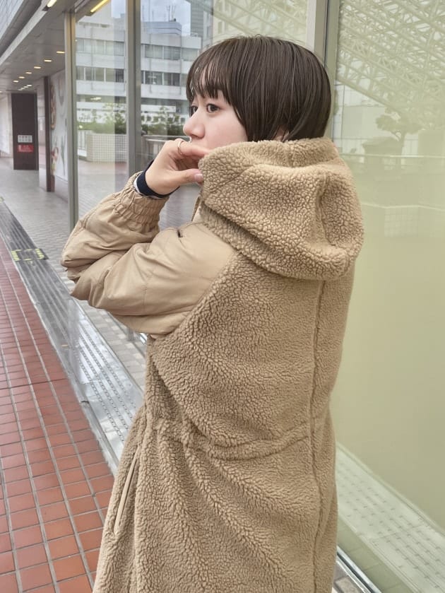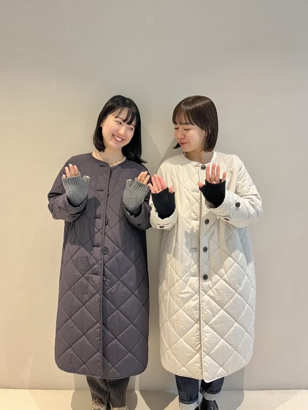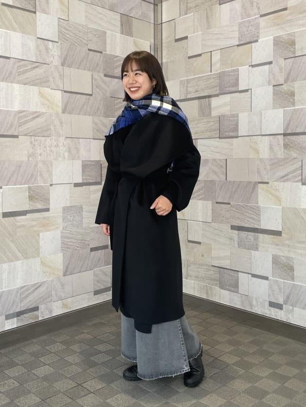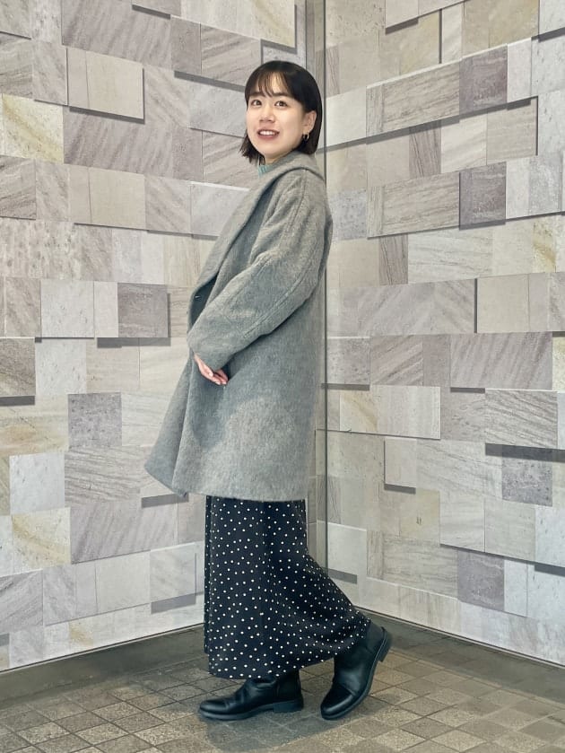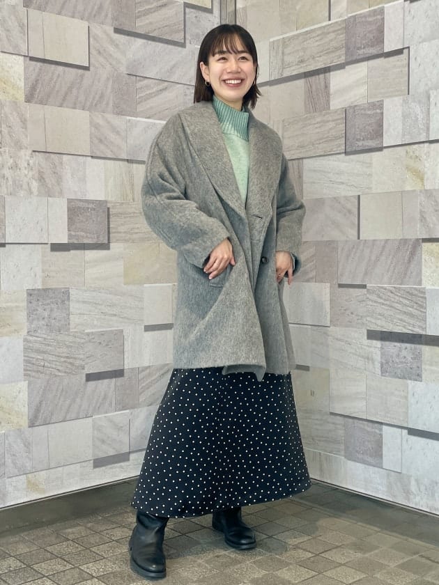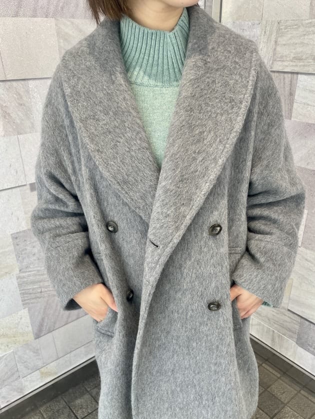 そのため、曲線が首元にくることで女性らしい雰囲気でコートを着用できます。