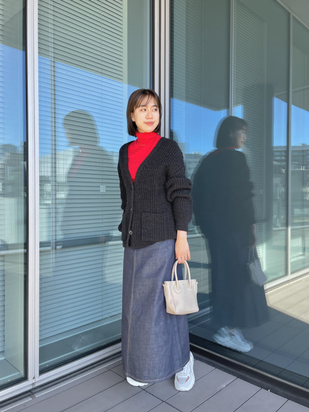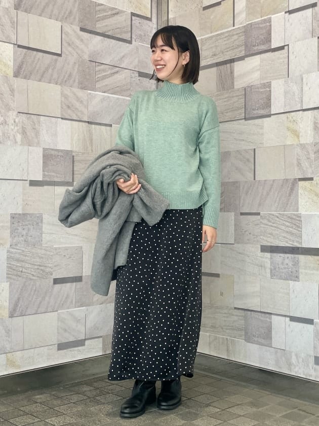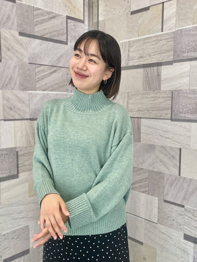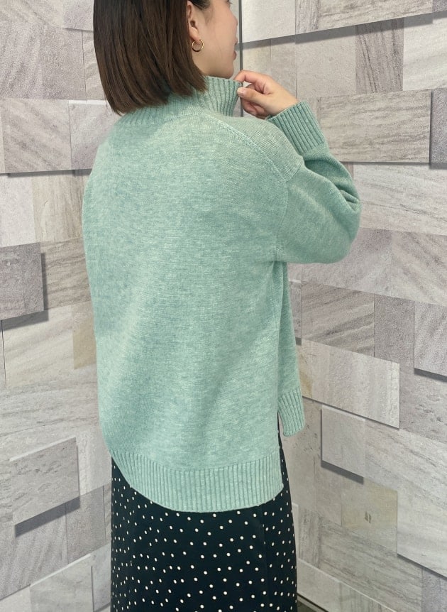 すっきりとしたハイネックの為、ロングヘアの方も髪の毛がまとわりつかず、おろしてニットコーディネートを楽しめそうです( ⁎ᵕᴗᵕ⁎ )