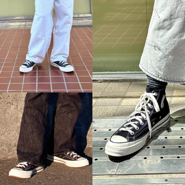 サイズ感が元々シャープなのもありますが、個人的にはCONVERSEは普段より大きいサイズで履く方がオススメです!