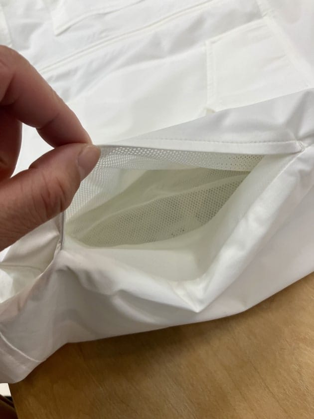 パッと見てわかる通り、かなりしっかりとした厚みを持たせていますが、中には「波状のウレタン」を採用しています。この波状の構造がクッション性を高め、肩にかかる荷重を絶妙に分散してくれるんです。