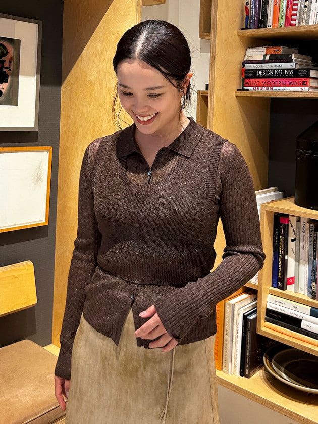 深みブラウンを、白で抜く。縦長ラインを強調する、大人のスタイルアップ術