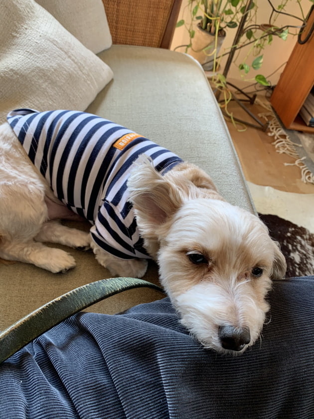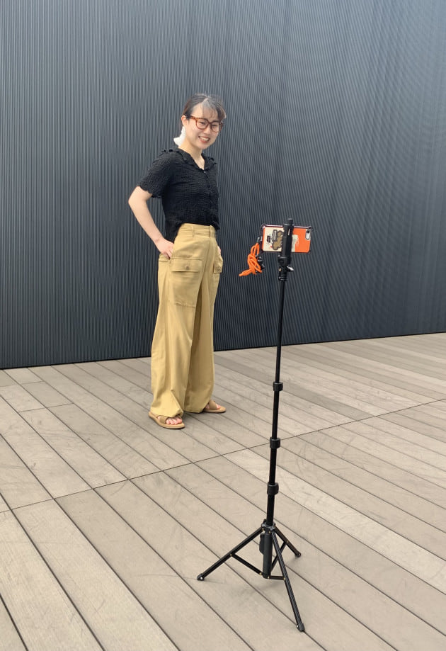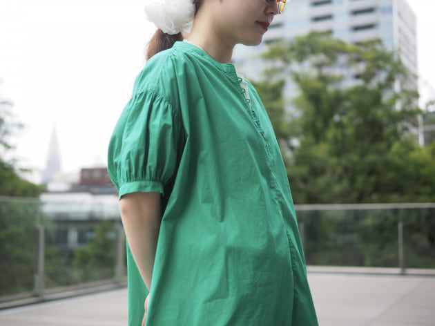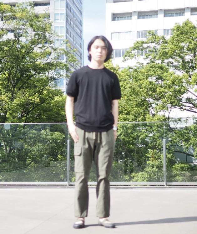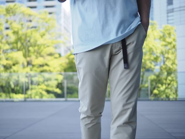お出掛け用には、スラックスタイプのパンツをチョイスします。