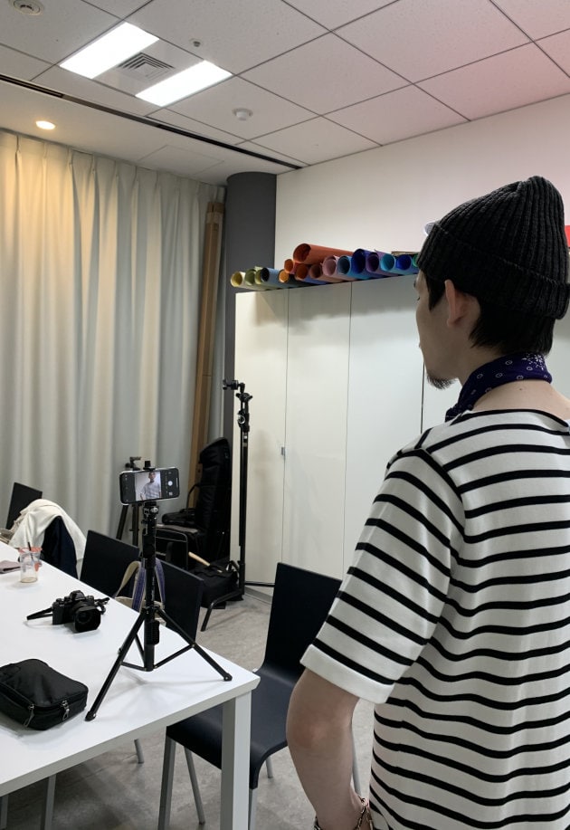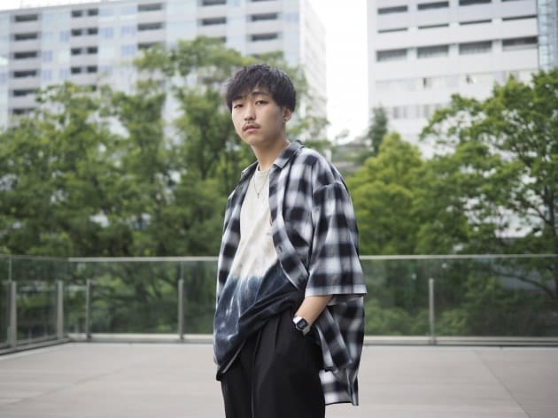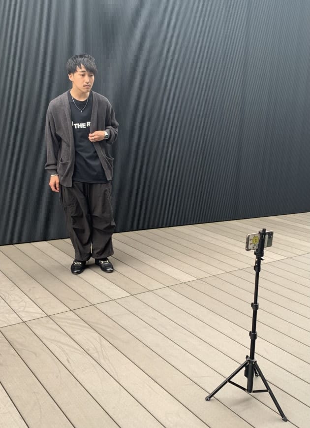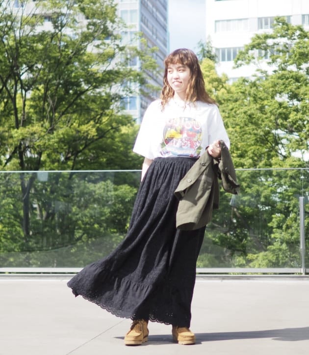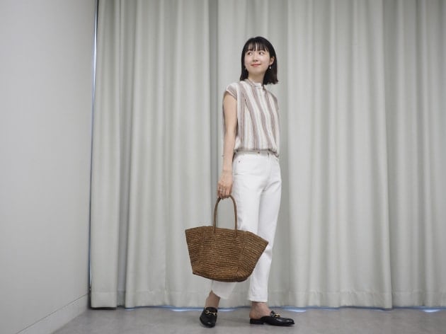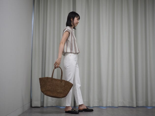 足元は、ホワイトのスニーカーで、カジュアル感&クリーンさも演出。