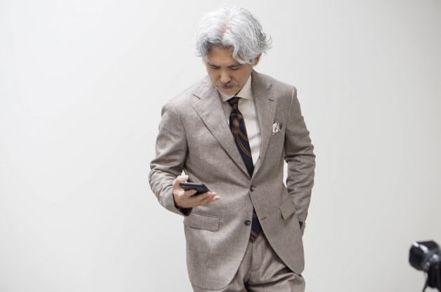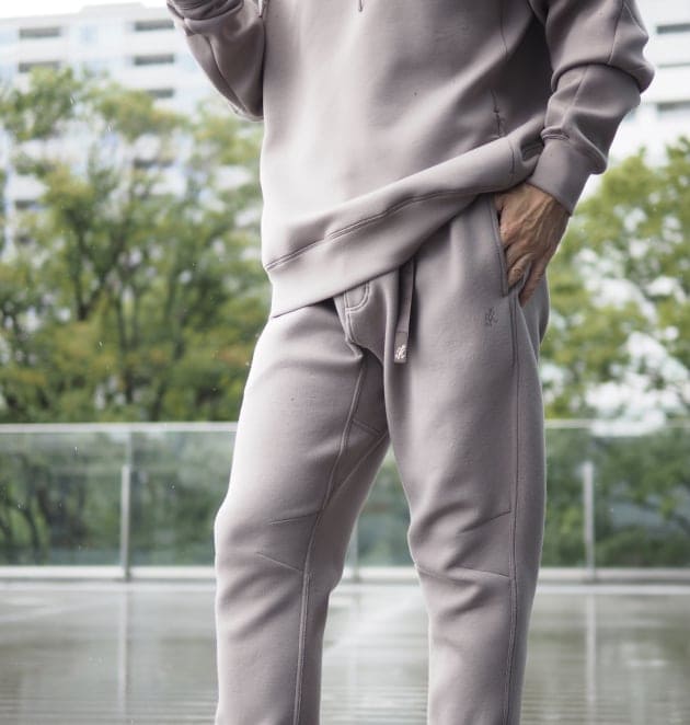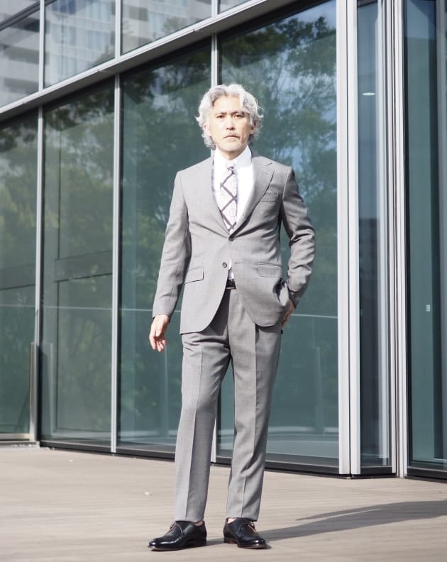 上品なフランネル素材を穿くだけで、クリーンな印象です。