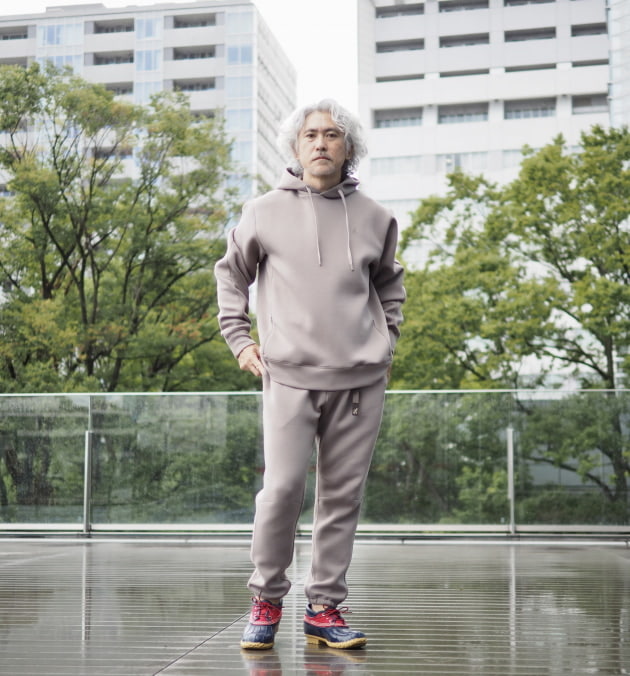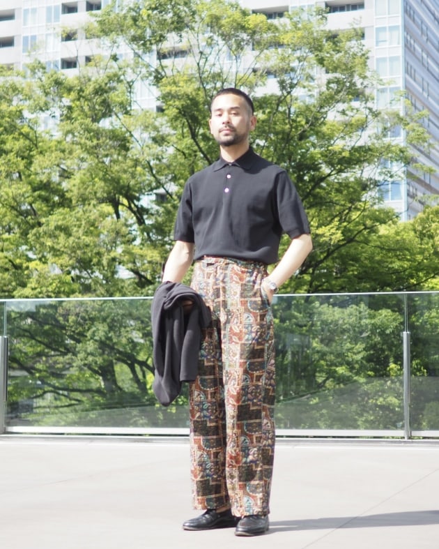 古着のスウェットに上質なウールのスラックスは、私自身が良く合わせるスタイリングで、お気に入りです。