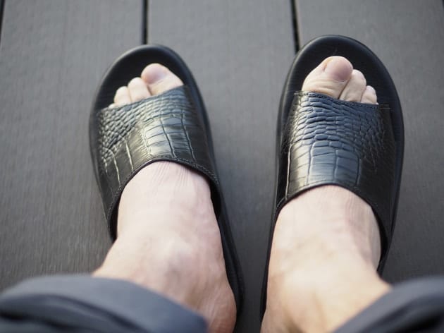 クッション性あるラバー製の厚いソールは、従来のカカトを付けるタイプのソールに比べて衝撃をはるかに良く吸収し、足への負担を軽減出来るのです。