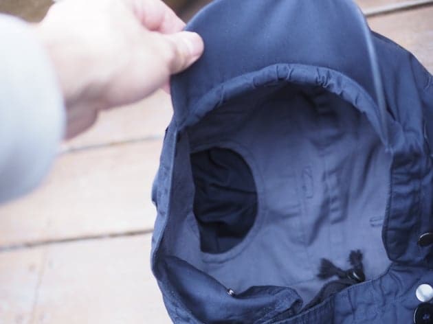 フードを被った状態でも音が聞き取れる仕様など、細部に手の込んだもの、現代の洋服では考えにくい手間のかかる作りです。