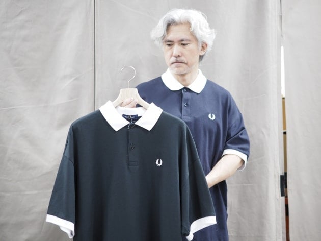 トップスのポロシャツ、ボトムスのデニムのトーンがより全体のコントラストを引き立てていますね。