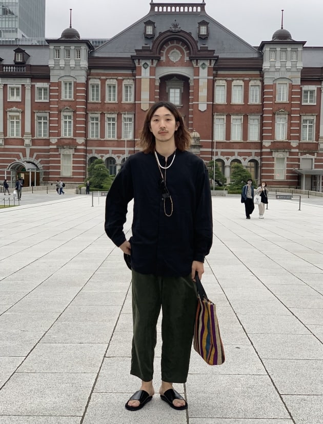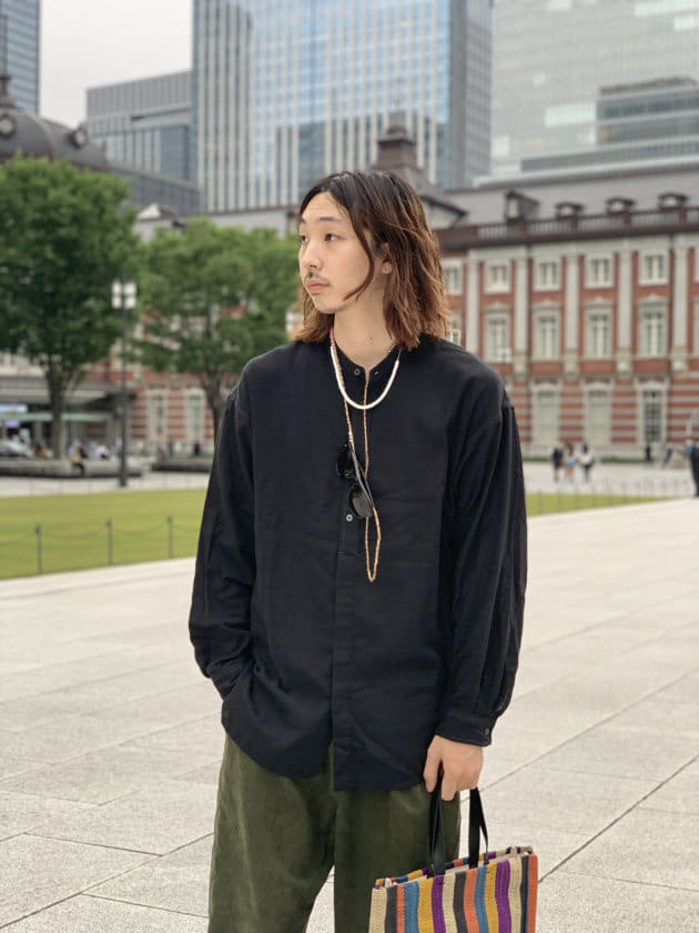 コウロギは、ビームス ライツのユルい雰囲気のガーゼシャツを、チョイス。