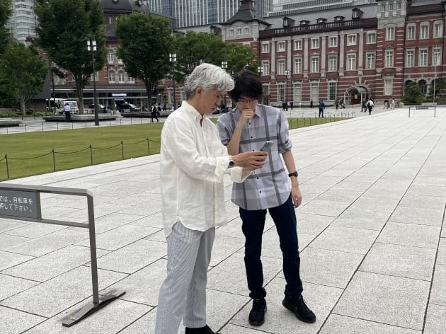ご自身の記念写真を求められて東京駅を背景にパチり。