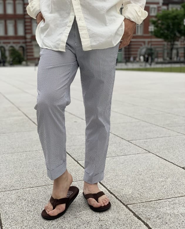 (スラックスには、敢えてのトングタイプをチョイスしたいですね!。)