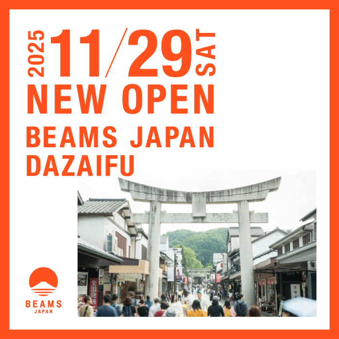 2016年にスタートしたBEAMS JAPANは、ビームスによる日本の魅力を国内外に発信する事業で、その店舗数は、この度の「ビームス ジャパン 太宰府」オープンによって10店舗になりました。なお、同事業では2022年に地域共創型出店「BEAMS JAPAN GATE STORE」プロジェクトをスタートし、日本各地の名所・景勝地などで、その土地をよく知る地元の人々や事業者と協力しながら、ローカルに根ざした新しい土産物開発や店舗運営を行っており、「ビームス ジャパン 太宰府」も同プロジェクトの7事例目です。