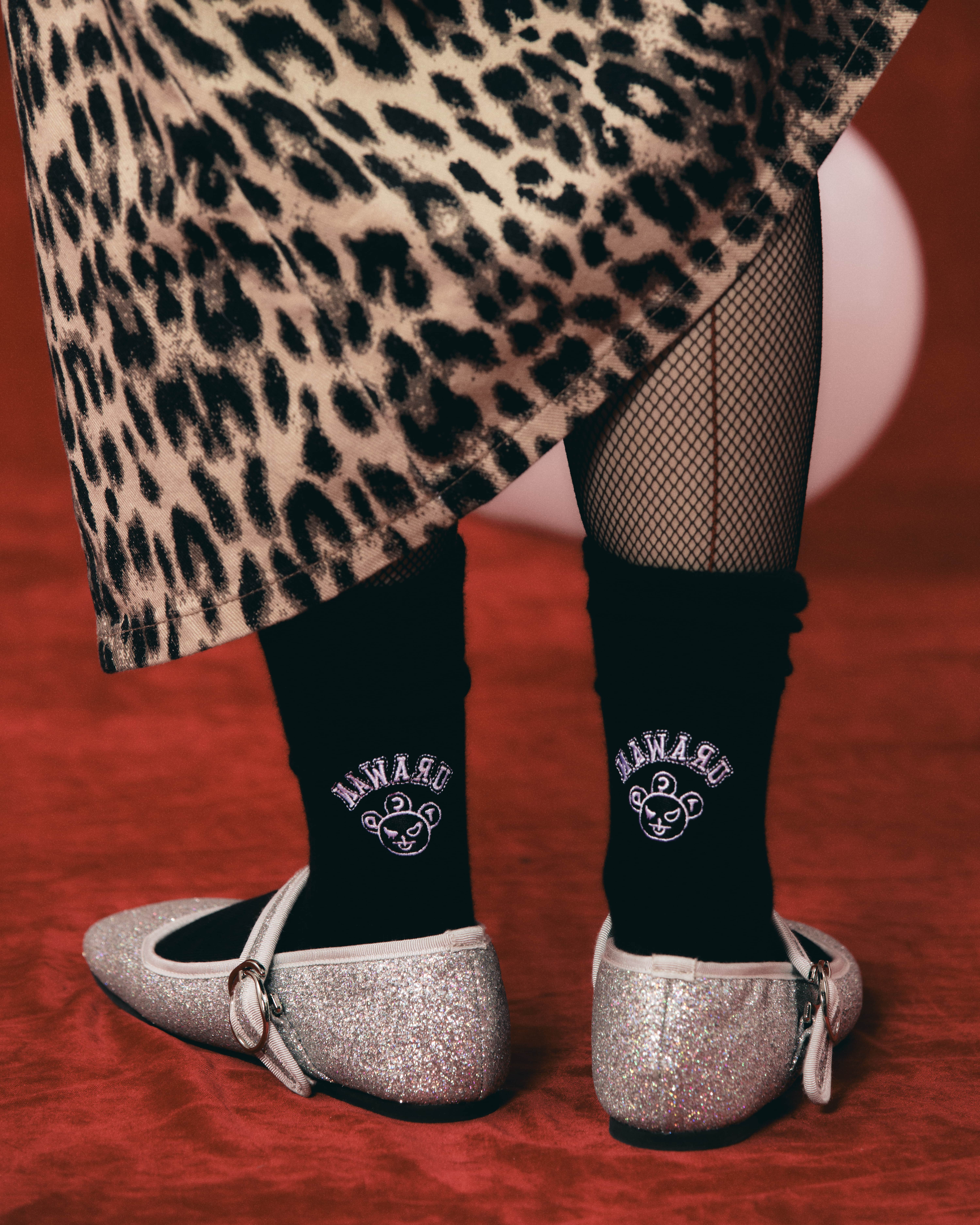 前から見るとシンプルな無地のリブソックス。実は、バックに“ウラワン”と“ワルクマ”のロゴ刺繍が入った遊び心あるデザイン。モノトーンカラーでベーシックなため、合わせる洋服を選ばない万能なソックス。
