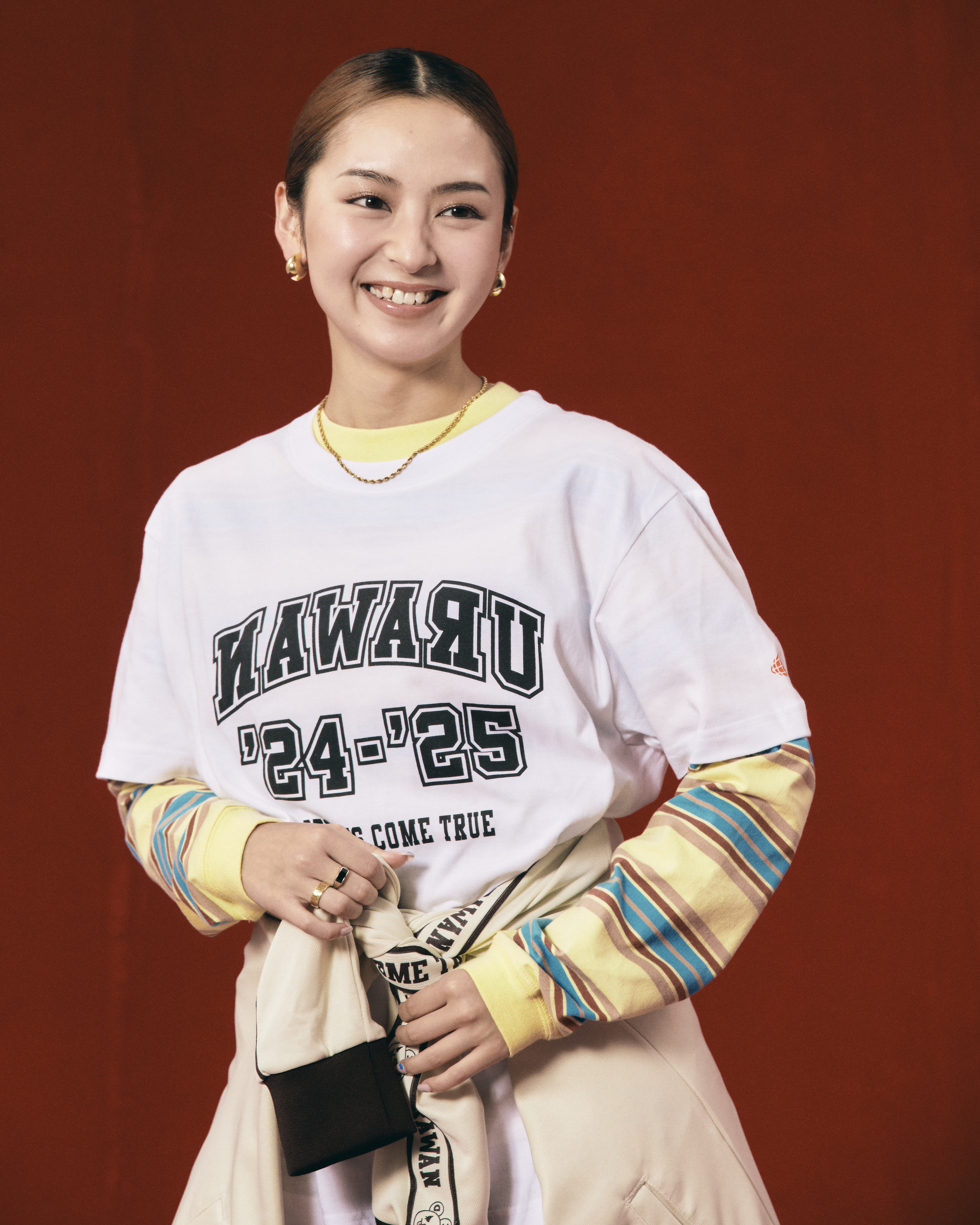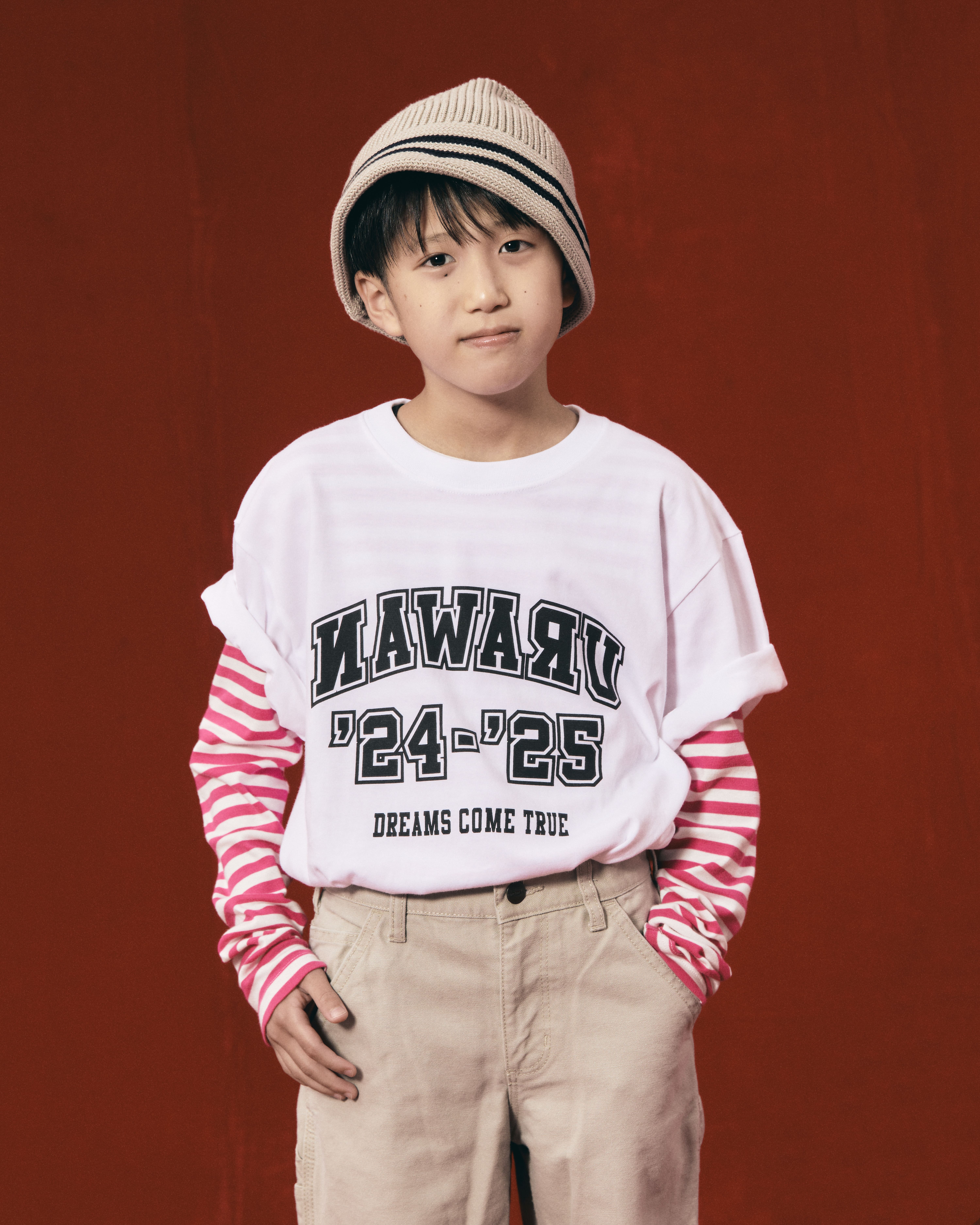 カレッジデザインをベースに、オリジナルの“URAWAN”ロゴを反転させてフロントに施したTシャツ。裏面には公式キャラクターのワルクマをメインに、『DREAMS COME TRUE』のファンネームである”BABYS”の文字入り。モノトーンカラーのシンプルな配色ながら、チーム感溢れるスペシャルなデザイン。