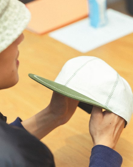 A.帽子作りが趣味で、今までに作った数は130から150個くらい。大学のダンスサークルの衣装として、一気に2、30個作ったこともあります。お気に入りの古着を捨てられず、もともと好きだった帽子にリメイクしてみようと思ったのが始まり。ずっと部屋でミシンを踏んでいるので、母には「また今日もやってる!」って心配されます(笑)。