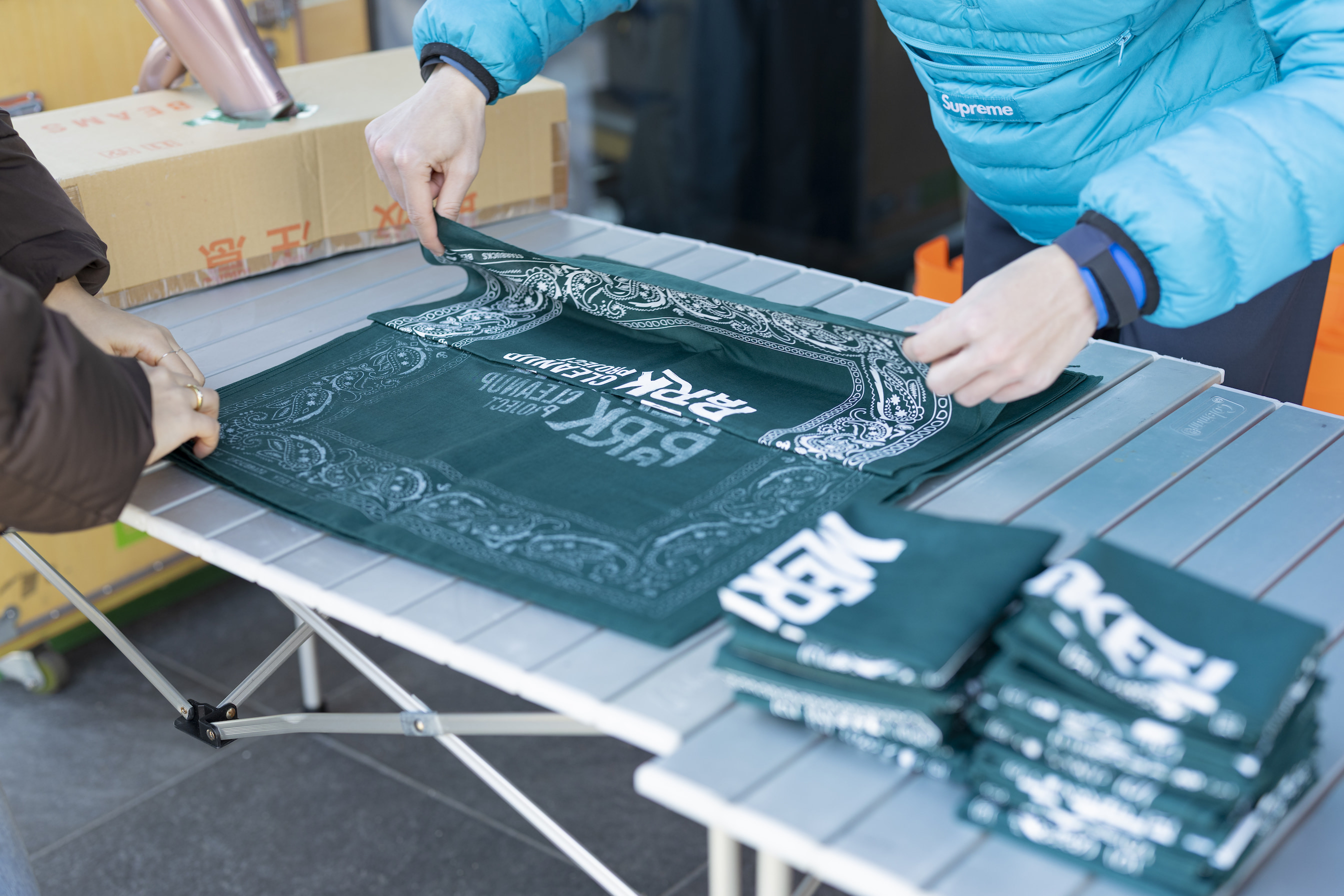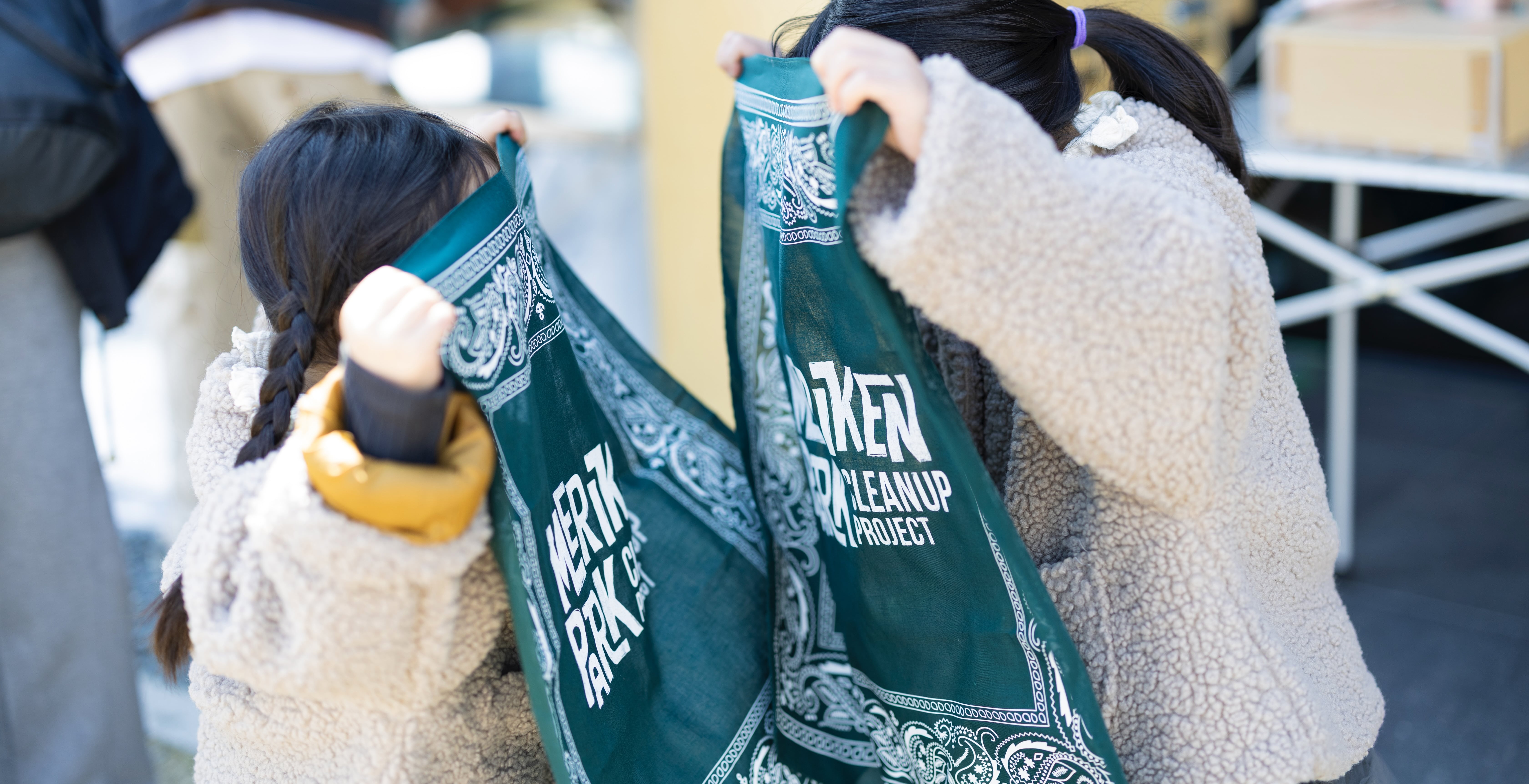 参加者にはビームスのオリジナルノベルティとして、23年度、24年度はさまざまな理由で販売できなくなったTシャツに、その場でシルクスクリーン印刷を施してアップサイクルしたものを、25年度はバンダナを配布。25年度は約240名が参加、集められたごみの総量は約110kgにのぼりました。