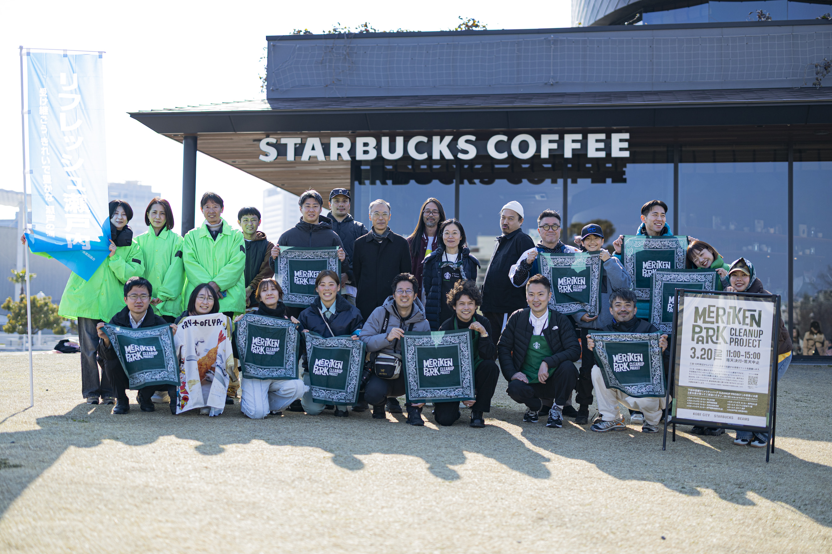 2025年3月20日に開催の第3回イベントのスタッフ。ごみの回収場所となった「スターバックス コーヒー 神戸メリケンパーク店」前で集合!