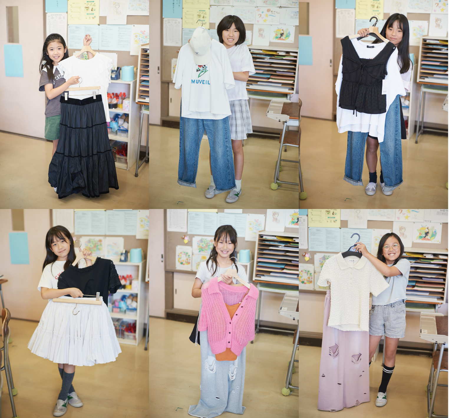 そして第二部は、ワークショップ。水上さんが持ち込んだビームスの服を使って、6人それぞれにコーディネートを考えてもらいました。小さな手には重い木のハンガーを握りしめ、鏡の前で真剣に悩みます。「決まった人から、記念撮影をしましょう。テーマも教えてね」。完成したのは、六人六様の個性あふれるスタイル。「夏らしく、カジュアルに」、「おとなっぽい服にしてみました」、「個性的でカラフルな感じ」など、おとな顔負けのコンセプトトークを繰り広げる子どもたち。中には、「伸びる生地で動きやすいコーディネートにしました」と、機能性にまで配慮する子も。大盛り上がりで時間いっぱいとなりました。