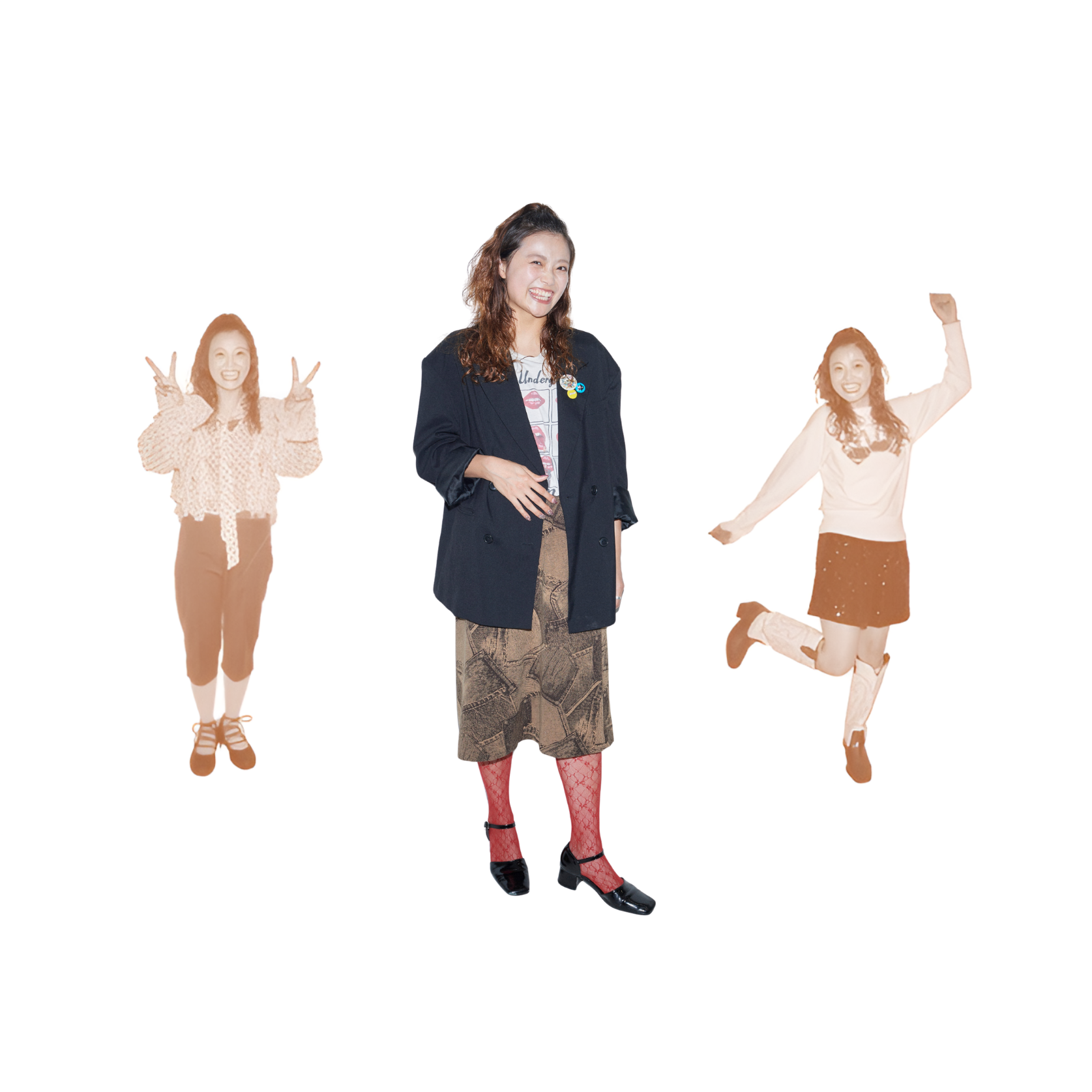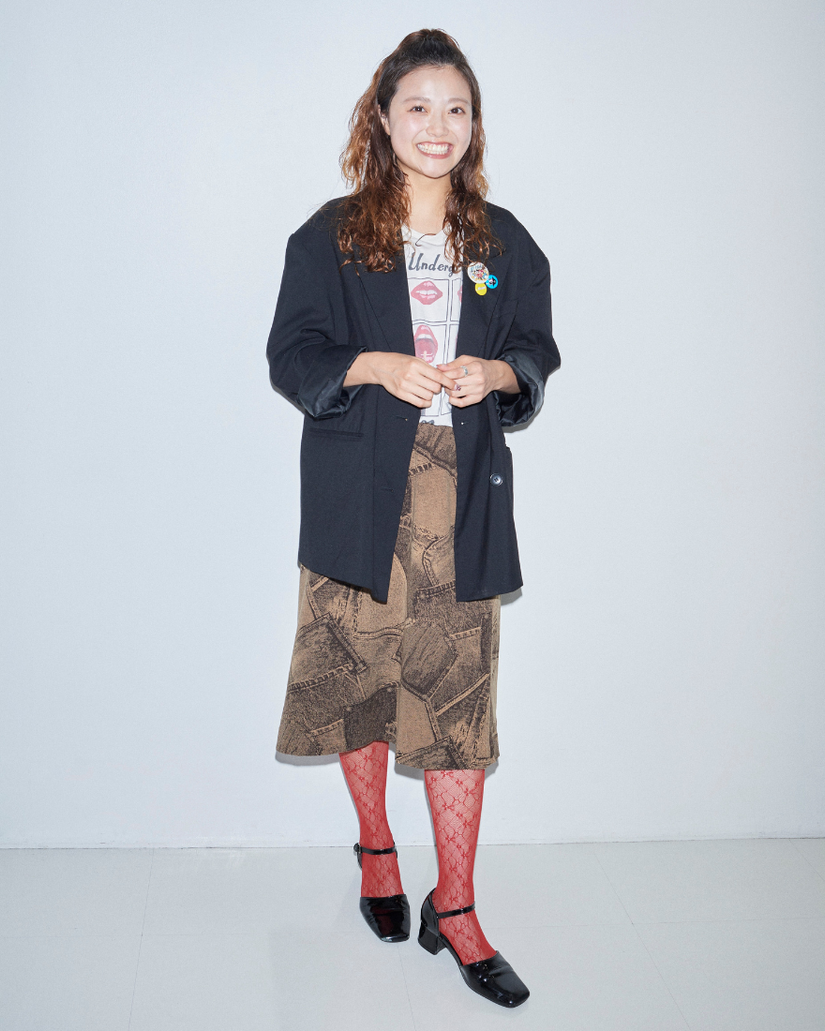 A.自分の中では、仕事用、プライベート用といった区別はなく、自分が着ていてときめくかどうかで洋服を選んでいます。毎朝、その日の気分に合わせて選ぶのでスタイルは毎日全然違いますが、かわいい洋服でとびきりのおしゃれをすることが、仕事のモチベーションになっています。最近は、電車の中で一緒になる人に「私はアパレル店員だぞ」とアピールする勢いで(笑)、赤い網タイツやスパンコールのショートパンツなど、個性的なアイテムを1つ取り入れることも多いです。