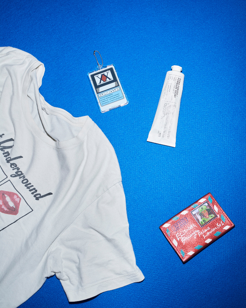 A.最近アニメを見て気になっていた『HUNTER×HUNTER』のICカードケースがお気に入り。自動改札機にタッチするときに電波をキャッチしてピカッと光るので「今日も頑張ろう!」と思えます。ハンドクリームは、〈LE LABO(ルラボ)〉のヒノキの香りを愛用。カードケースは、トニー・クロスビーが手がけるブランド〈COXCOMB(コックスコーム)〉のもの。ビームスでポップアップを開催したときに購入したもので、毎日持っています。