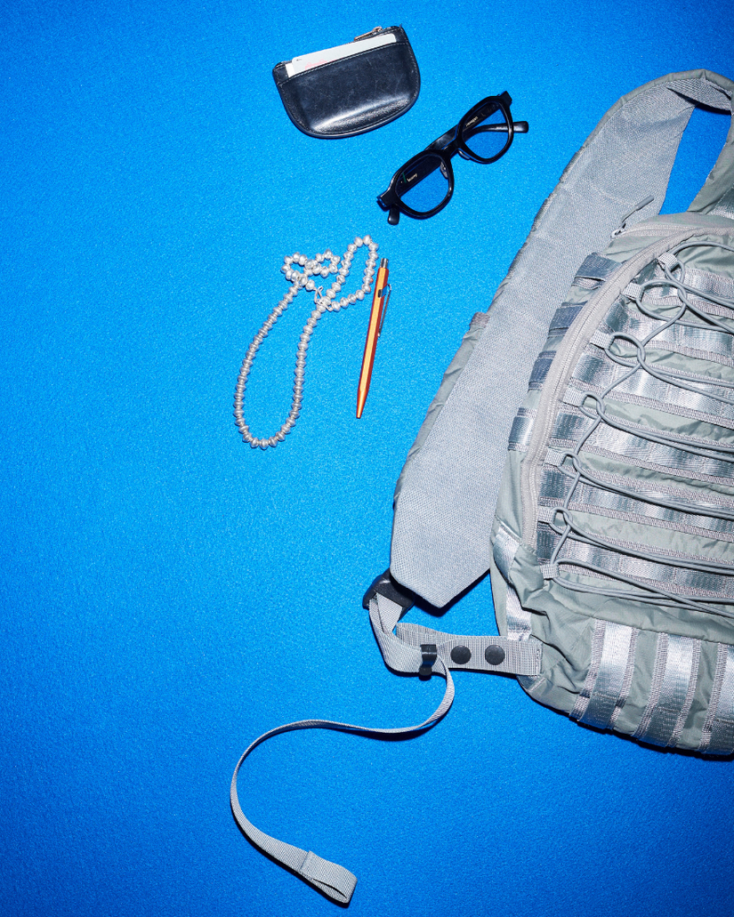 A.メガネは童顔対策(笑)。店舗責任者としてお客様と話をするときに若く見られることがあって、店舗に立つときは度なしのメガネをしています。ナバホパールは、最近唯一つけているアクセサリー。〈CARAN d'ACHE(カランダッシュ)〉のボールペンは、仕事ではちょっといいボールペンを使うといいとアルバイト時代に教えてもらって使い続けています。今、4代目かな? 左利きの自分にもハマる形で使いやすく、お守り的な存在にもなっています。バッグは、忘れ物をしやすいので中身を出し入れしなくて済むよう1つのバッグを使い切り、ダメになったら買い換えるのがマイルールです。