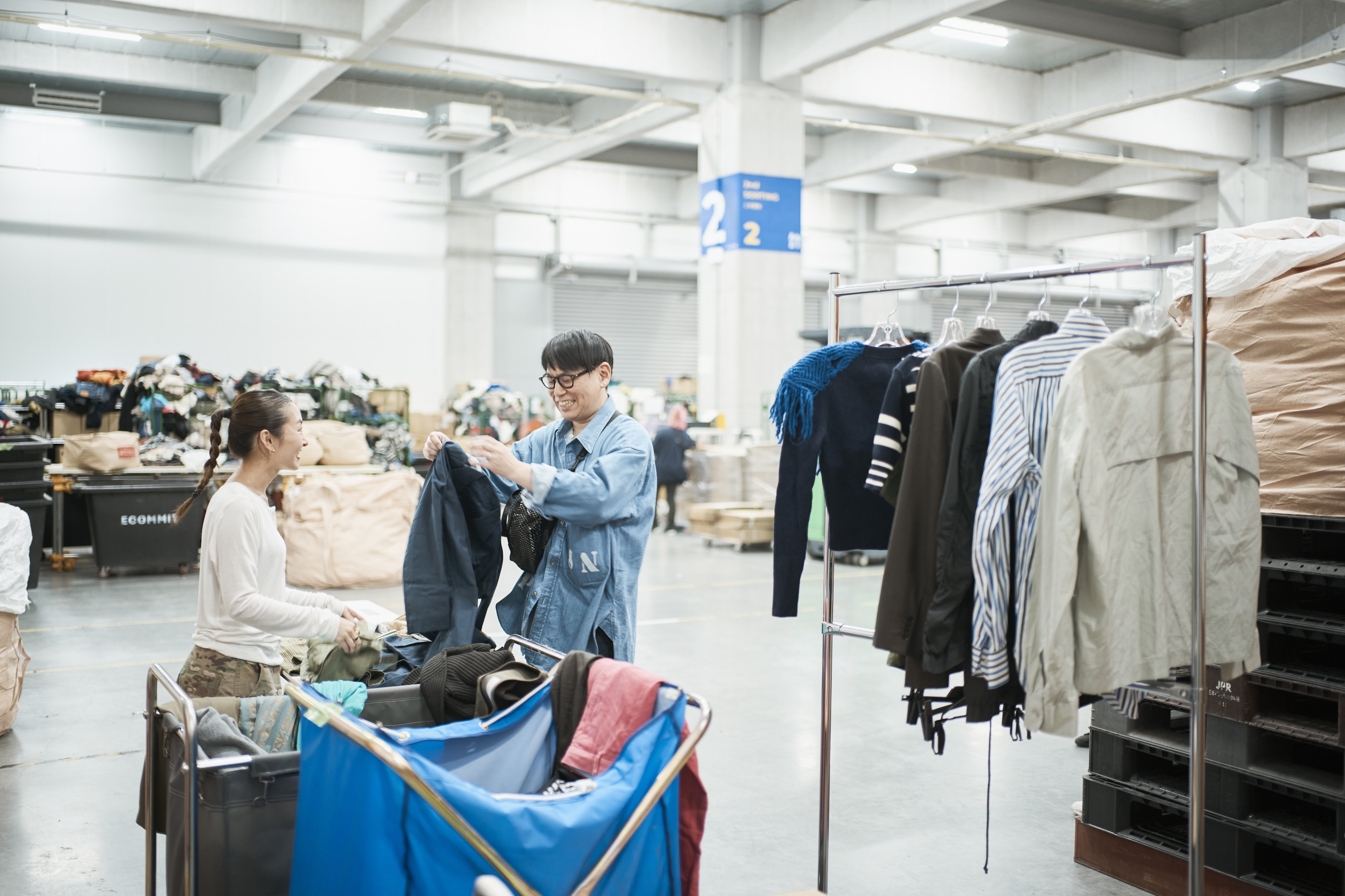 中編は、リメイク企画の活動現場を追って、ビームス工房の新井、ビームス ライフ 横浜スタッフの合田とともに「ECOMMIT 東京サーキュラーセンター」へ。回収された大量の衣類の中から、どんなアイテムがピックアップされ、どんなアイデアが生まれるのでしょうか。ファッションへの並々ならぬ愛情とサステナブルな取り組みが融合した、あたらしい価値観がそこにはありました。