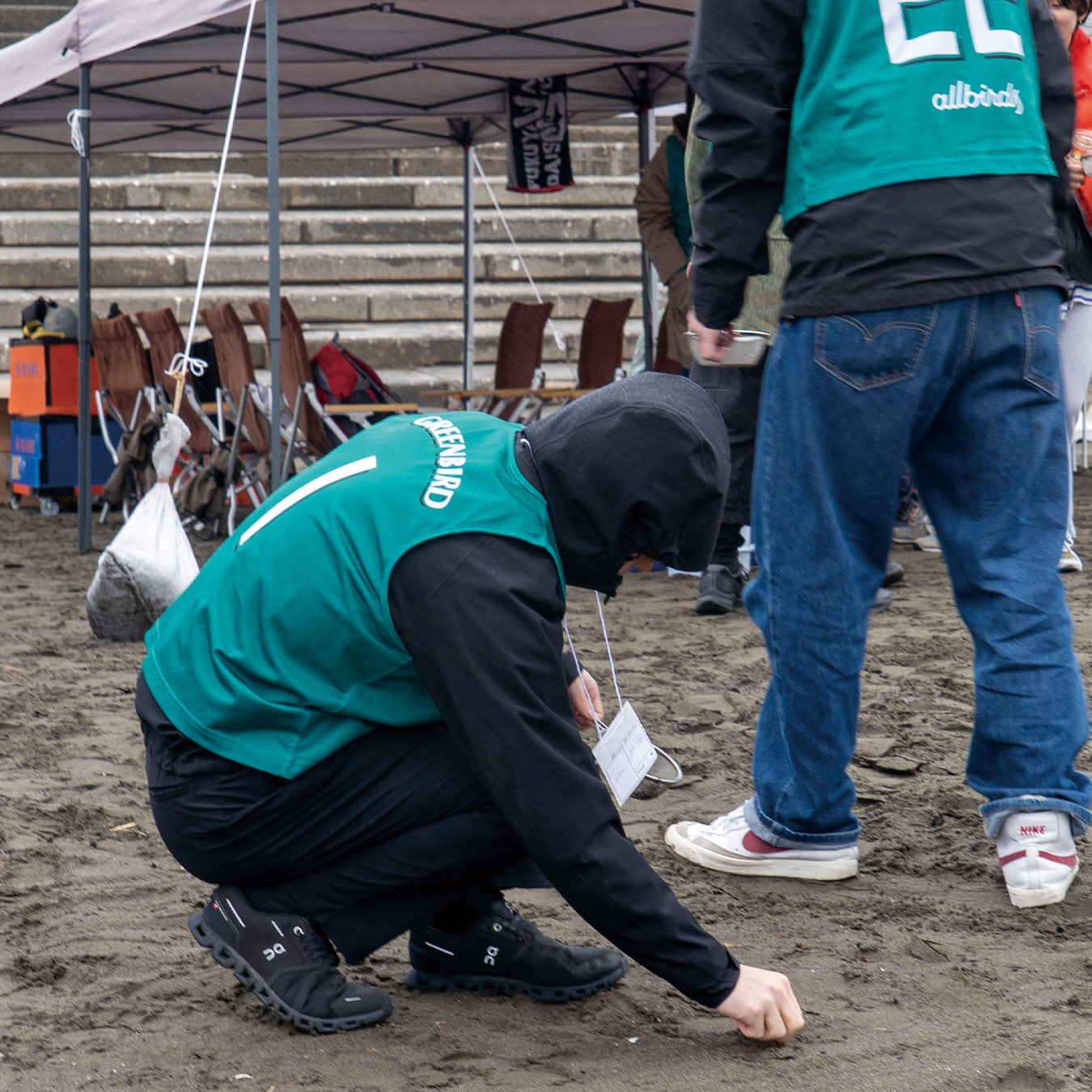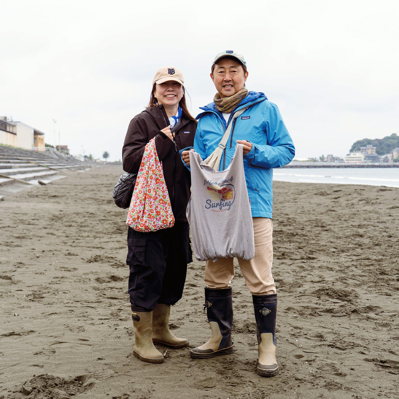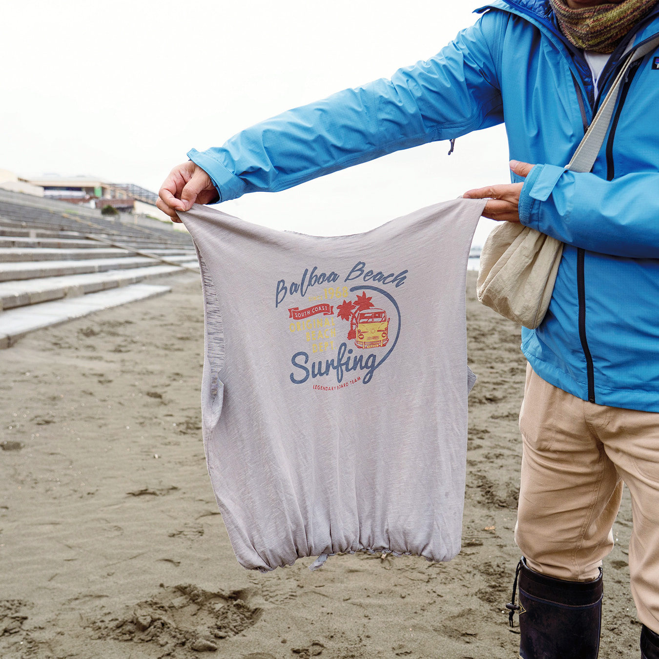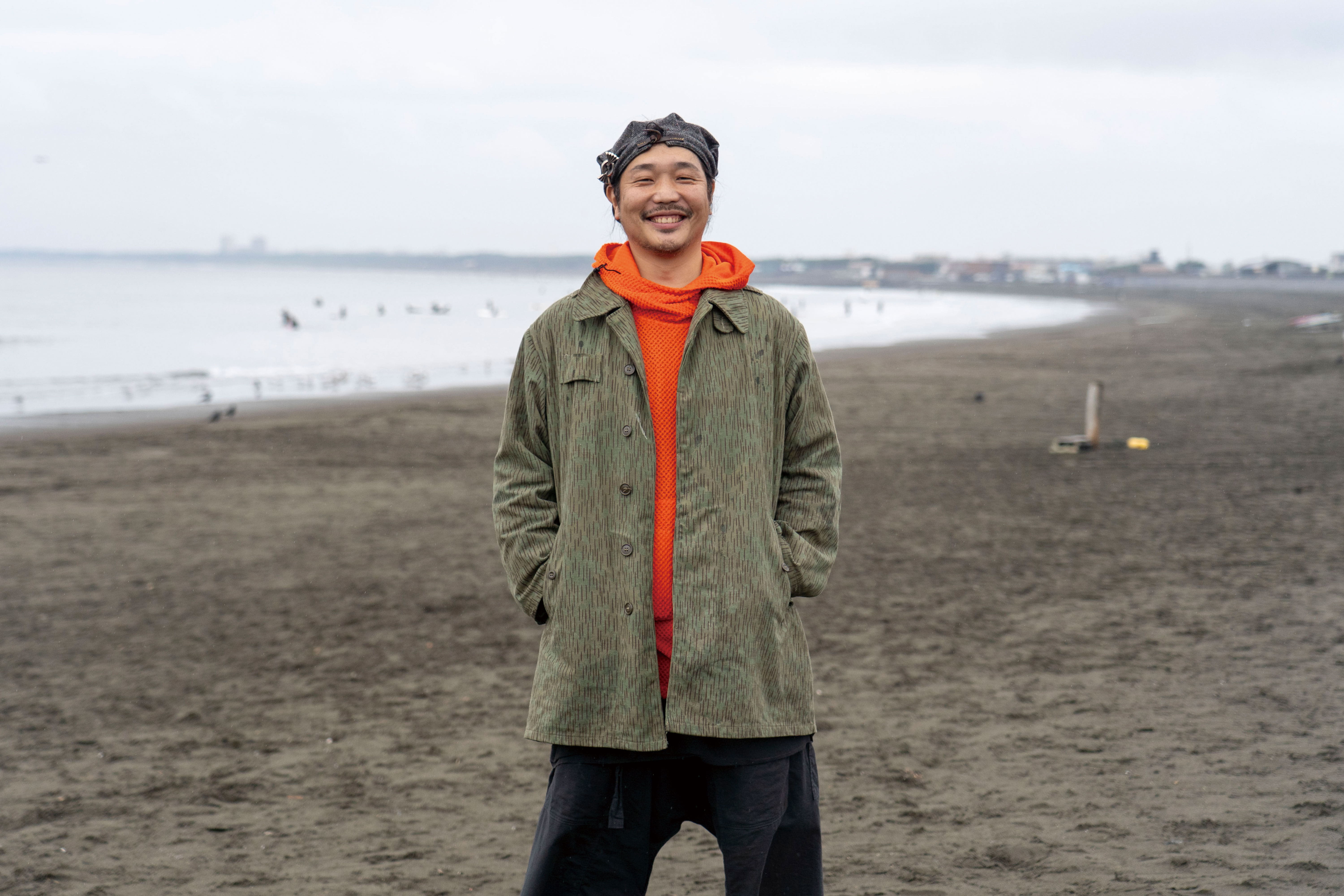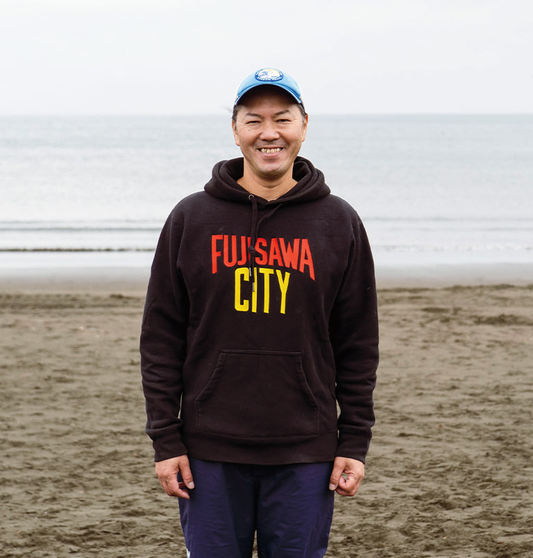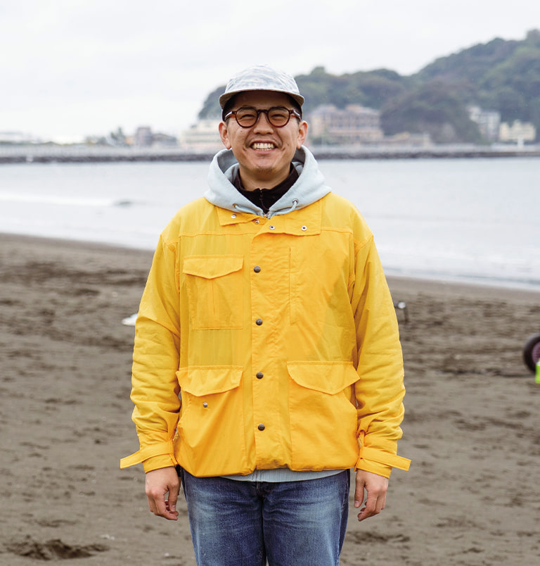 イベントの主催者であり、自らも湘南の海を愛する「ビームス 辻堂」のショップマネージャー・草野。「辻堂の街のスローな雰囲気や人々の魅力に触れ、街を守る活動がしたい」と考えたことが、イベント開催のきっかけになったと語ります。「何かできないか」と考えていたとき、出勤途中で地域の清掃団体グリーンバードの人々がゴミ拾いをしているのを見かけ、代表の佐藤さんに声をかけたことが転機に。佐藤さんの人柄に惹かれ、「一緒に何か取り組みたい」という思いに至ったそう。今回のイベントは、グリーンバード辻堂チーム、江の島の網元・殿網(とのあみ)の漁師さん、湘南に暮らす人々など、人と人との繋がりを基盤として実現したもので、“湘南の海を守りたい”という気持ちが参加者たちを一つにしました。
